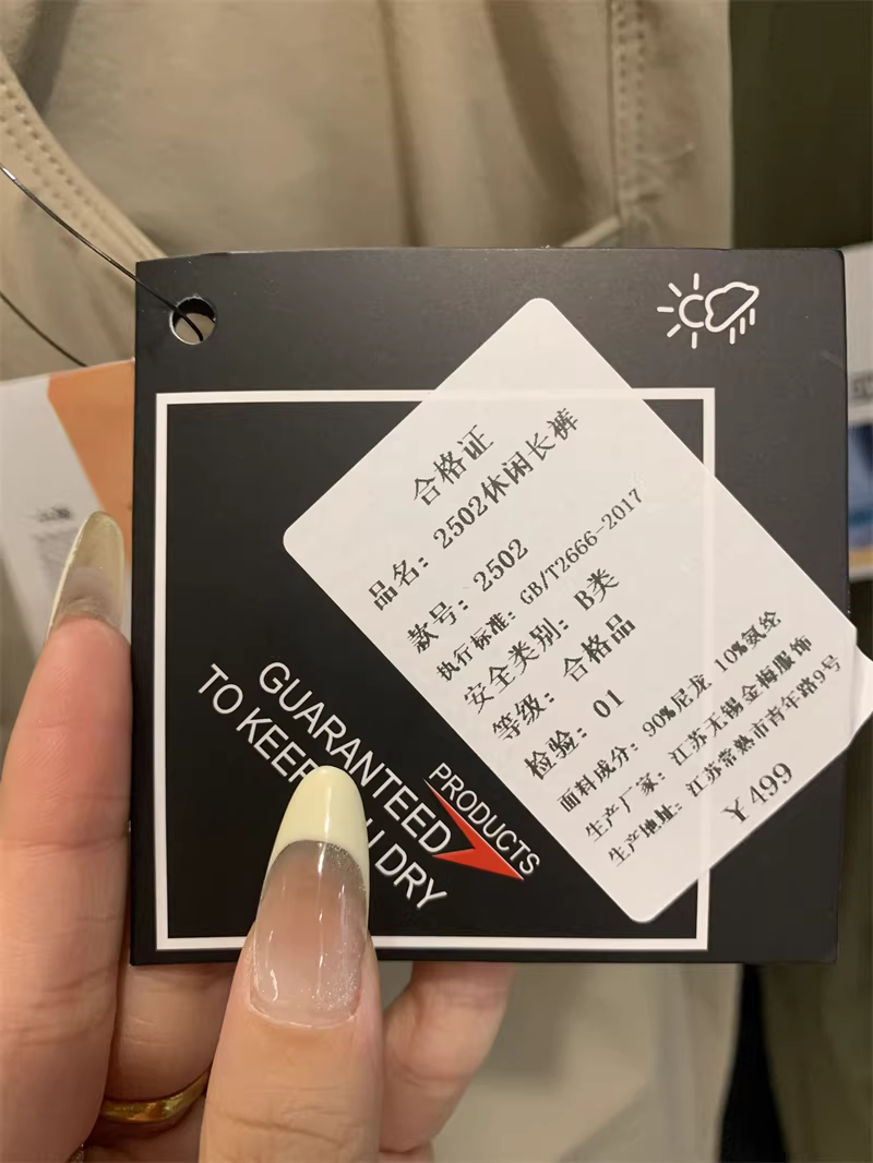 | L | 腰围88 | 臀围111 | 脚口围40 | 裤长103 |