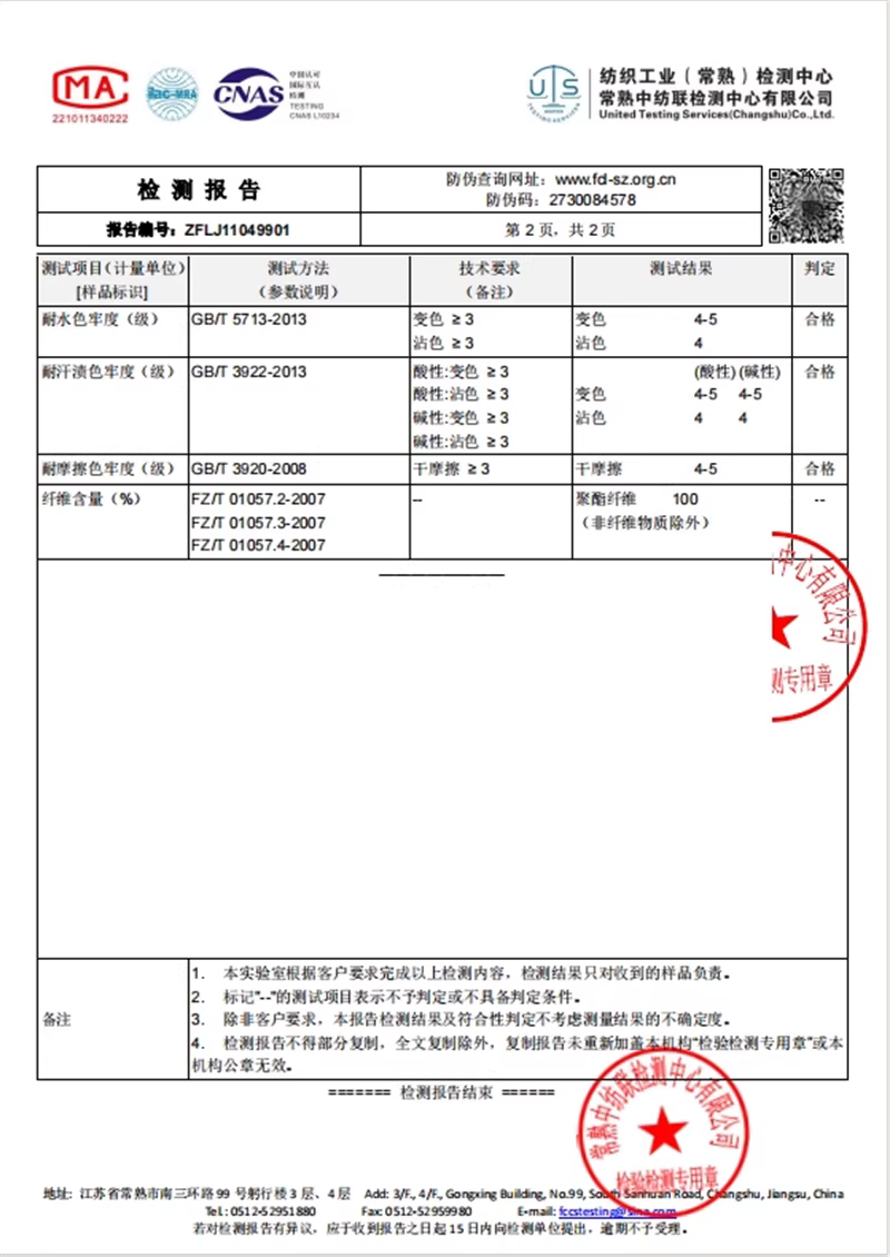 面料/里料:100%聚酯纤维