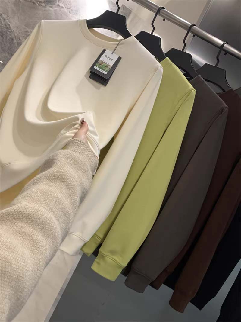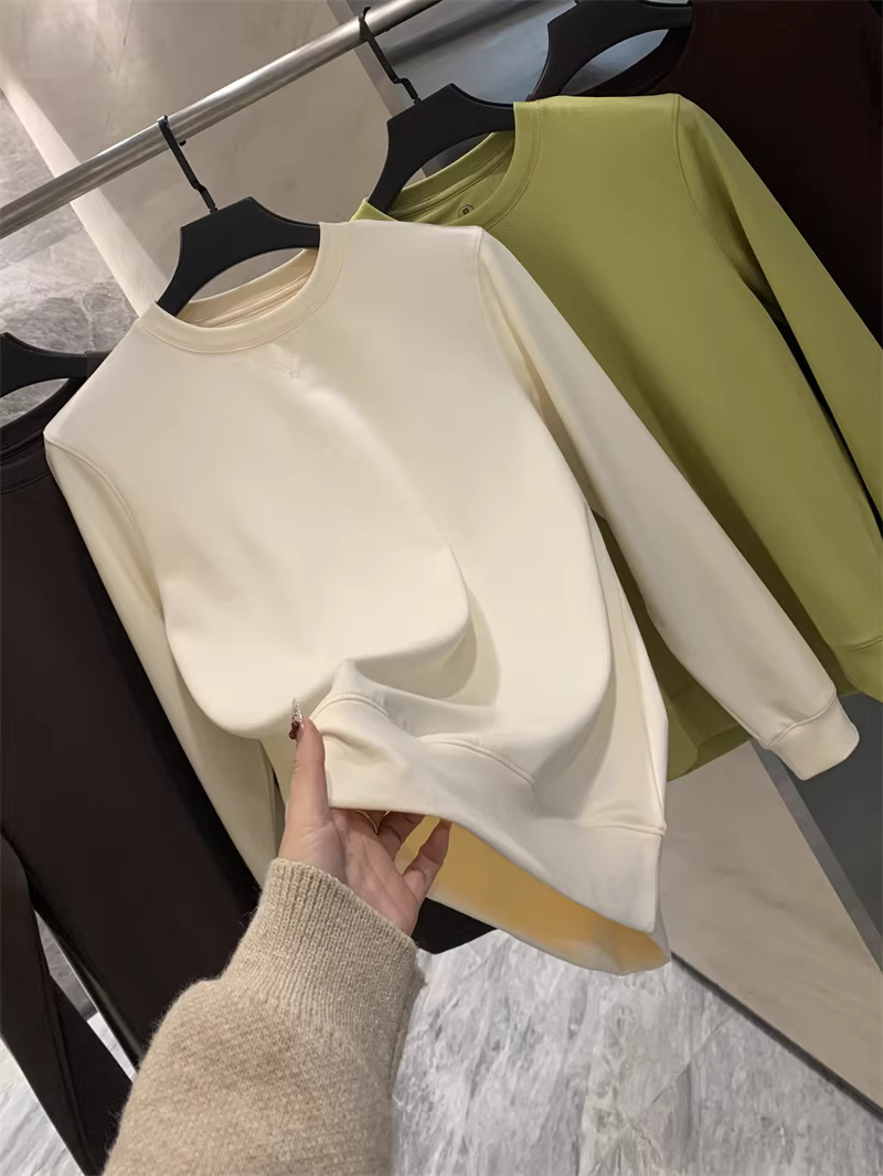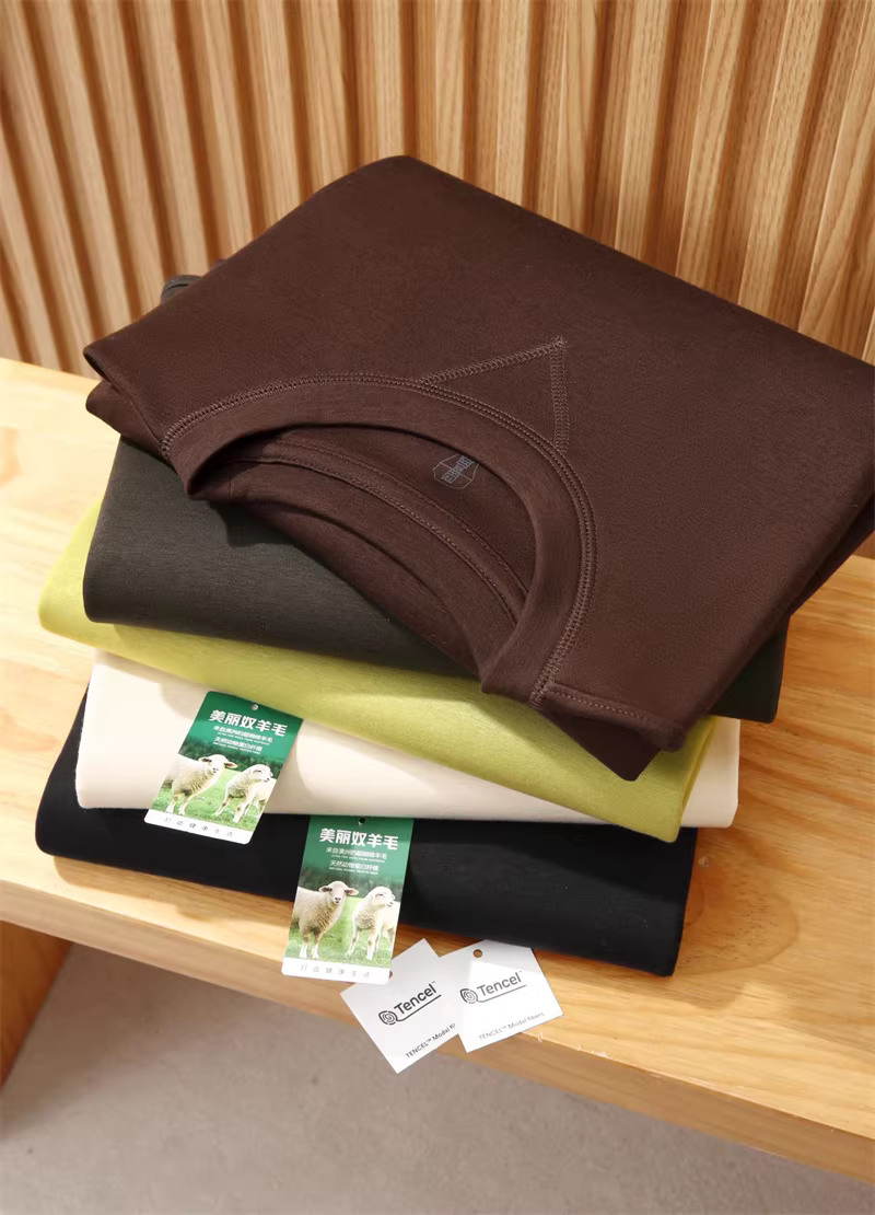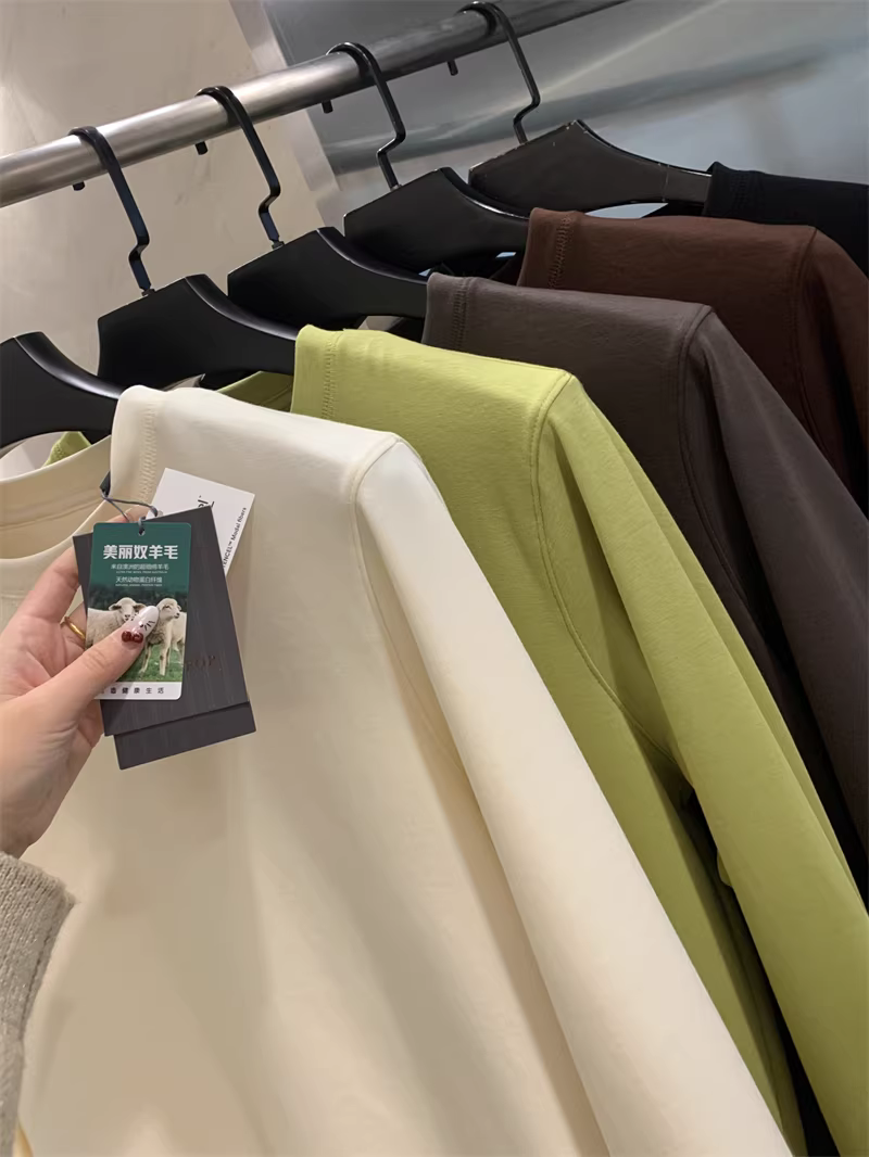 Don Quixote, sang trọng! Lenzing Modal + chất liệu len pha! Áo thun dài tay cổ tròn màu trơn, chất liệu lông cừu tổng hợp giữ ấm.