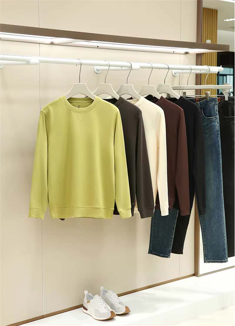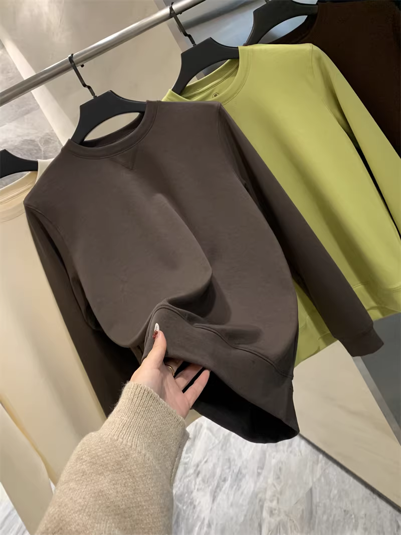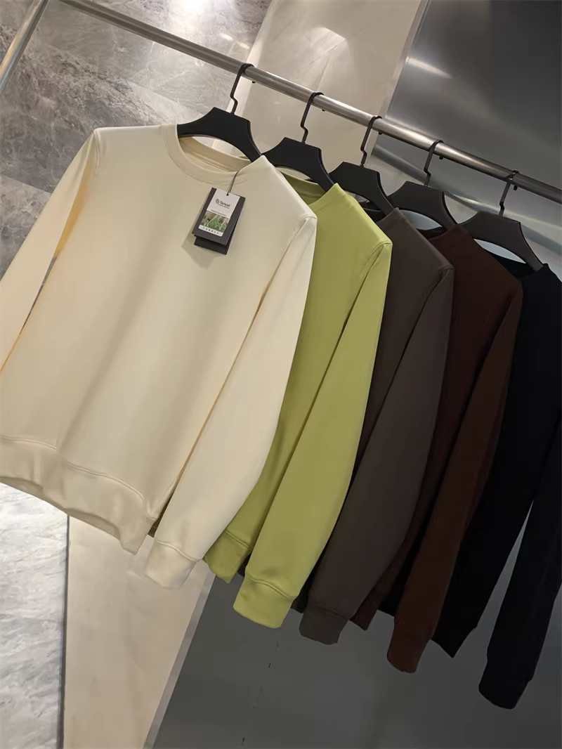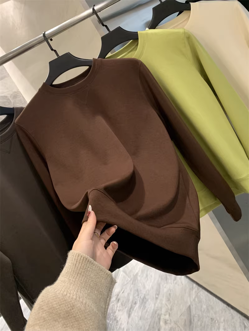 Don Quixote, sang trọng! Lenzing Modal + chất liệu len pha! Áo thun dài tay cổ tròn màu trơn, chất liệu lông cừu tổng hợp giữ ấm.