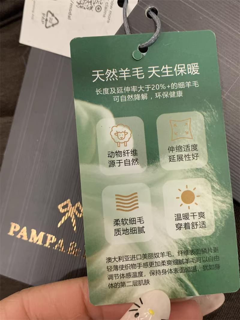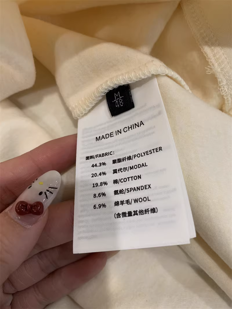 44.3%聚酯纤维+20.4%莫代尔+19.8%棉+8.6%氨纶+6.9%绵羊毛