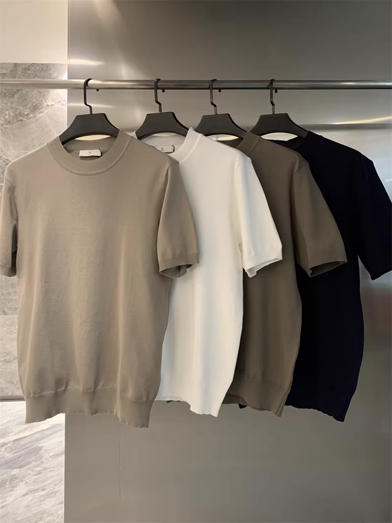 Don Quixote Sự sang trọng nhẹ nhàng của Ý! Áo polo nam dệt kim tinh tế, mềm mại, thân thiện với da, thoáng khí.