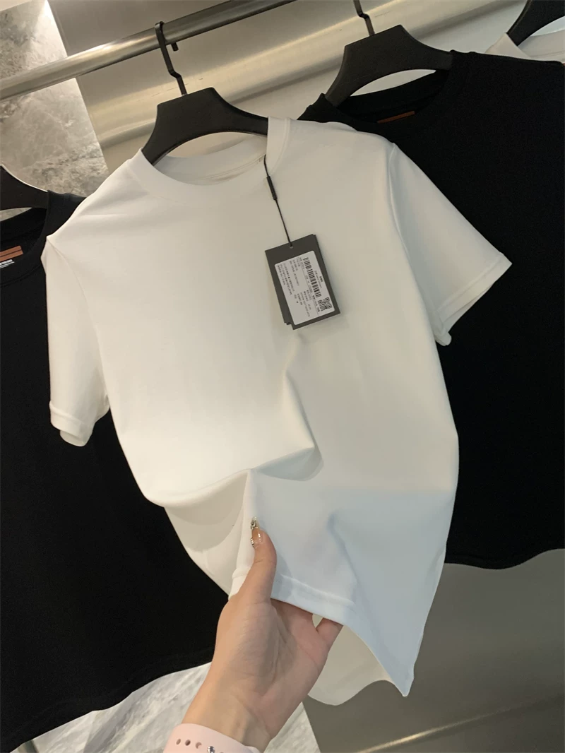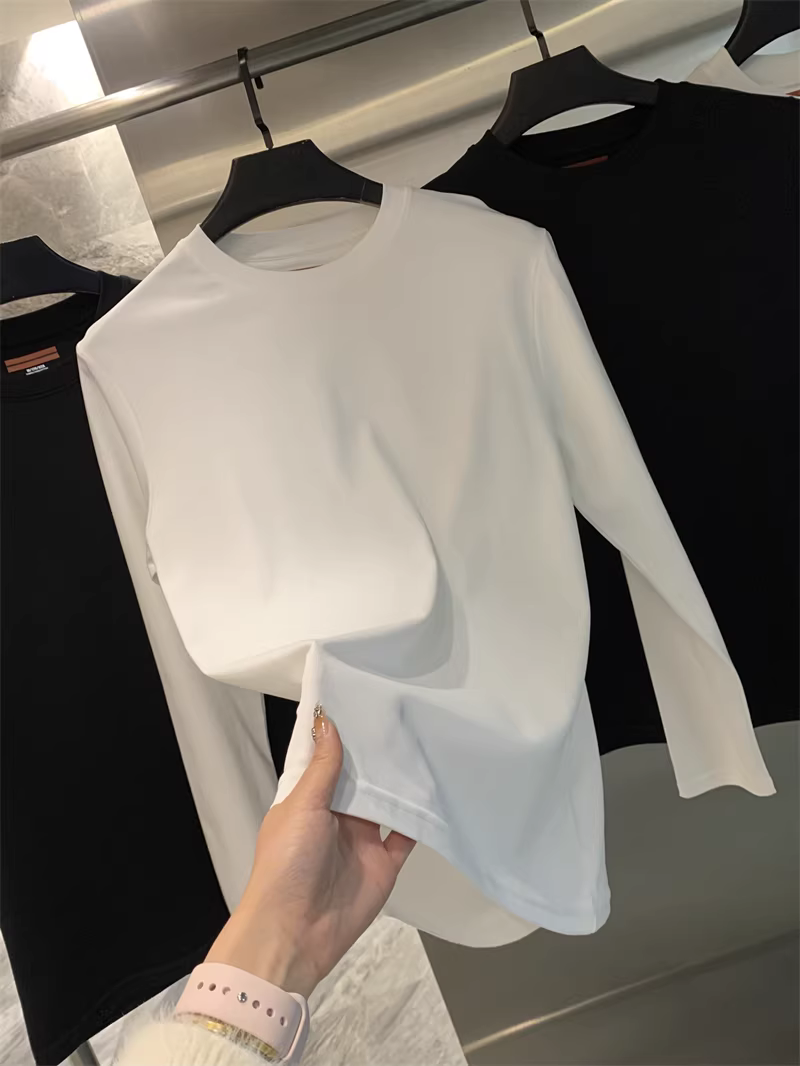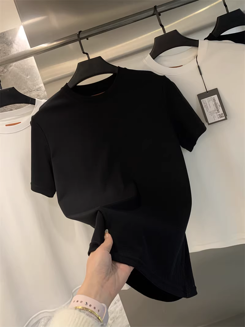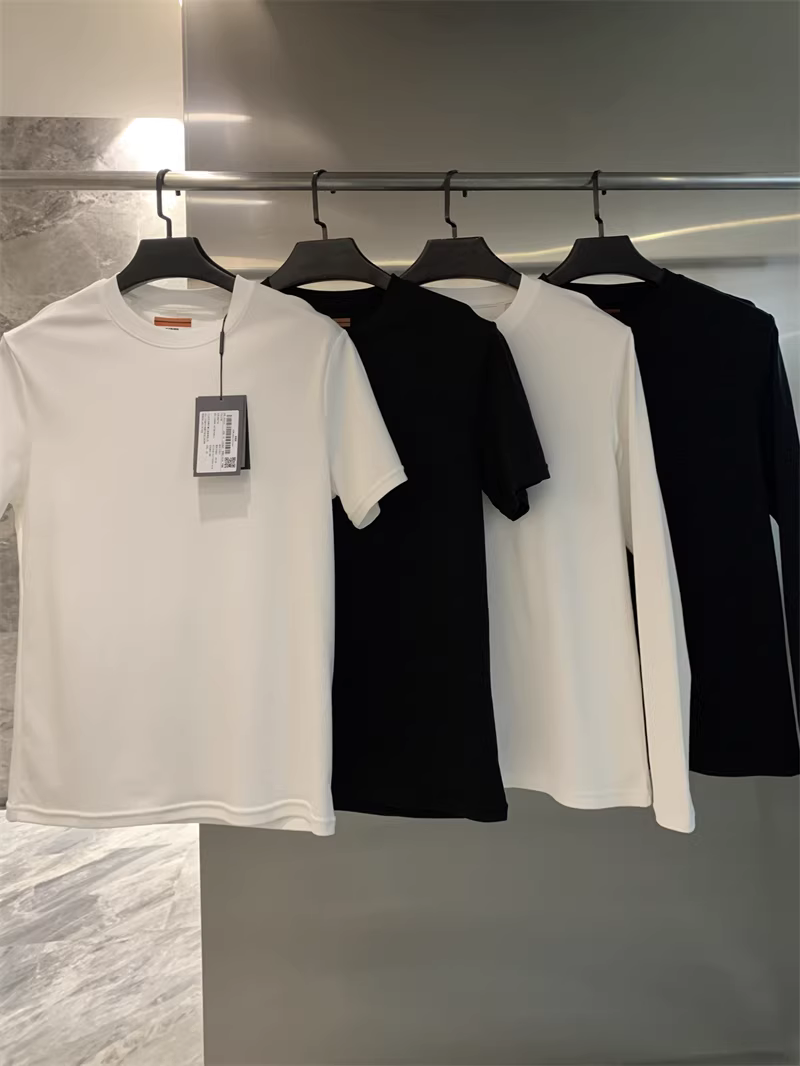 Don Quixote - Sự sang trọng nhẹ nhàng của Ý! Áo thun nam chất liệu cotton dài sợi Xinjiang làm mát bằng amoniac lỏng, màu trơn, cổ tròn, tay dài/ngắn.