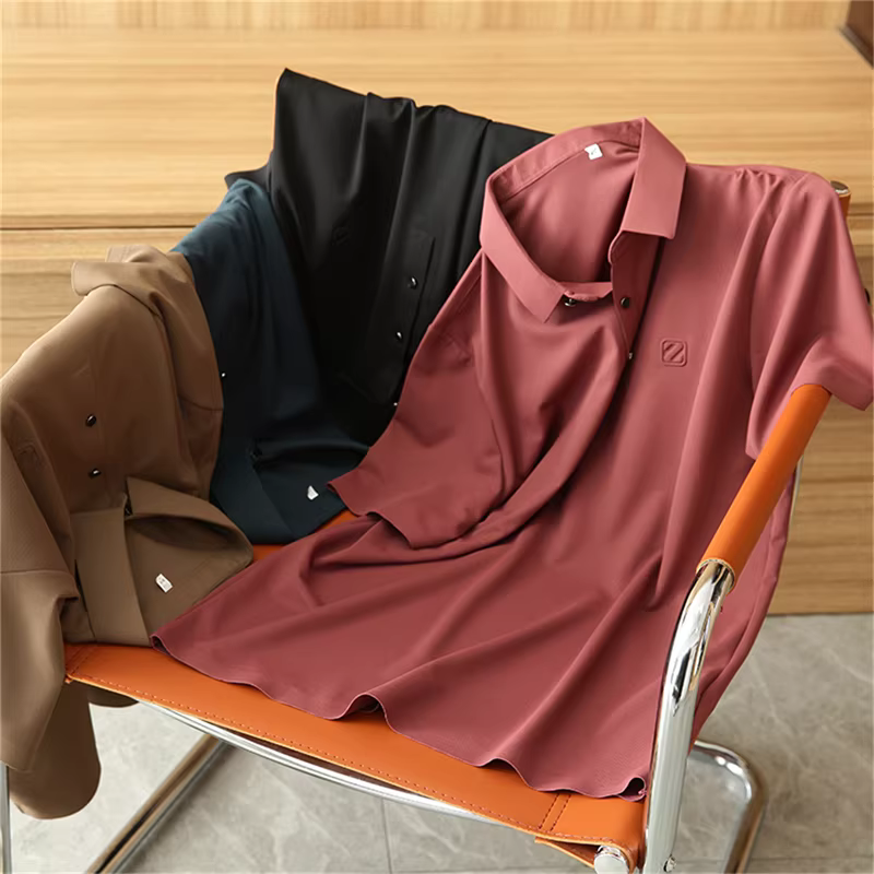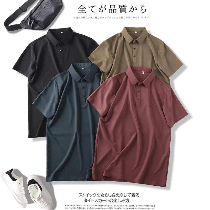 - Don Quixote, sự sang trọng nhẹ nhàng! Dán liền mạch + co giãn bốn chiều! Áo polo nam mùa hè, cổ trụ, tay ngắn, kiểu dáng thường ngày