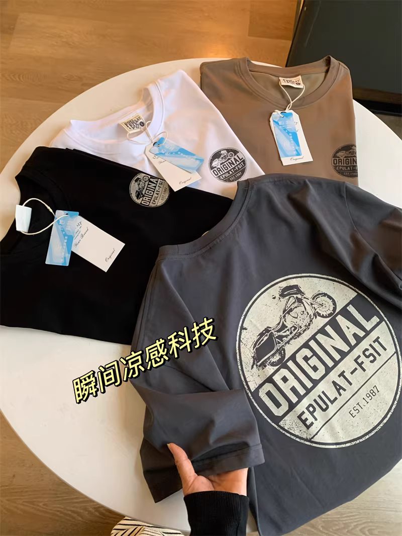 Don Quixote Technology Vải mát mẻ! In cổ điển! Áo thun nam ngắn tay cổ tròn thoáng khí thoải mái mùa hè