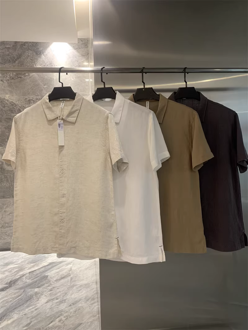 - Don Quixote Tencel Lyocell+Linen+Rayon! Áo sơ mi ngắn tay đa năng thông thường mùa hè dành cho nam giới