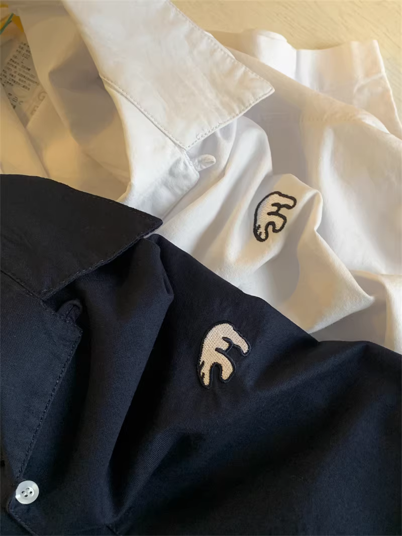 - Don Quixote Thêu đơn giản! Áo sơ mi ngắn tay thông thường dành cho nam mùa hè 100% cotton thoáng khí phong cách Nhật Bản