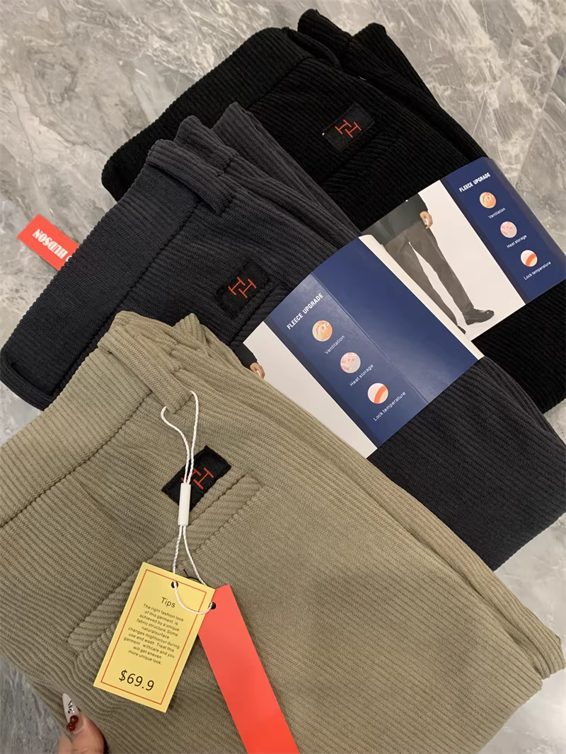 Don Quixote, toàn bộ hàng đều có giá gốc! Thẻ nguyên bản! Quần âu nam chất liệu vải bố gân dệt kiểu Mỹ, lót lông cừu, mùa thu đông, phong cách giản dị.