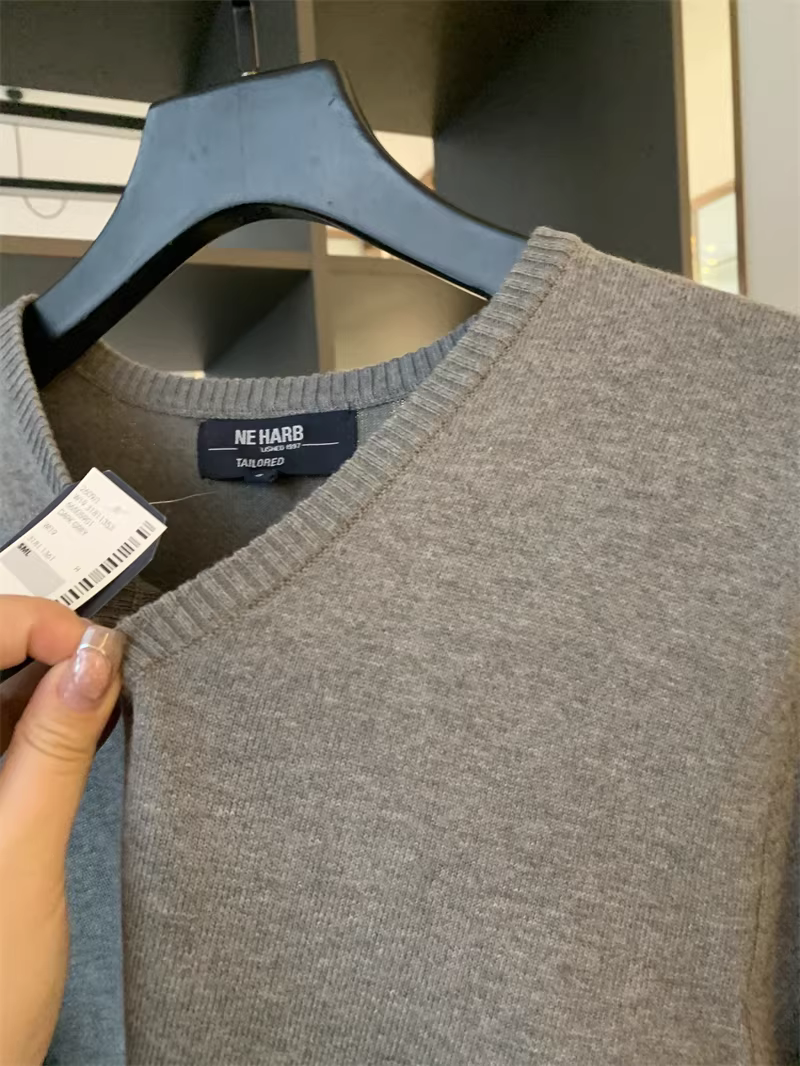 Don Quixote tự mình đến Nam Phi! Giá cả phải chăng! Áo len dệt kim màu trơn cổ chữ V dành cho nam mùa xuân.