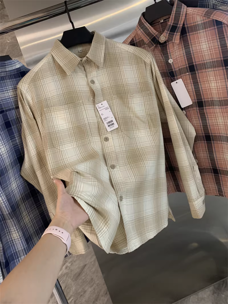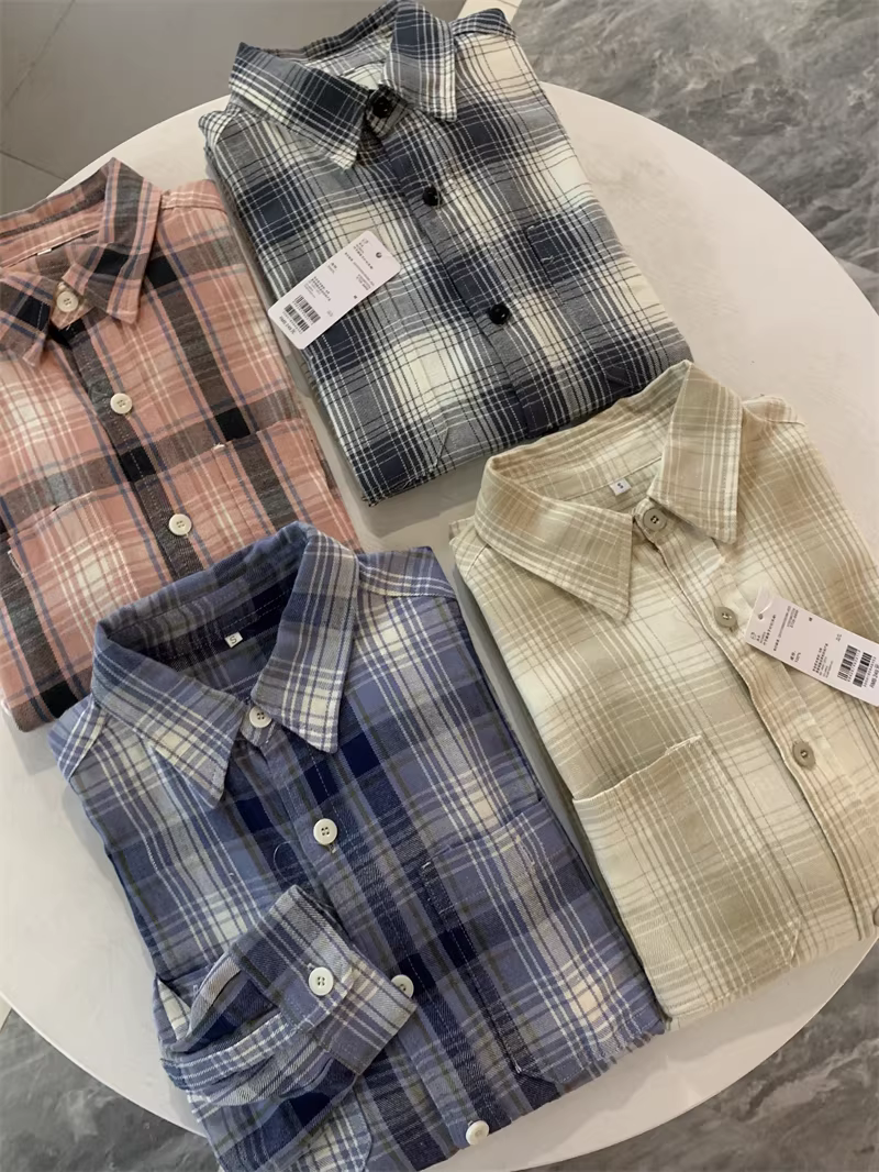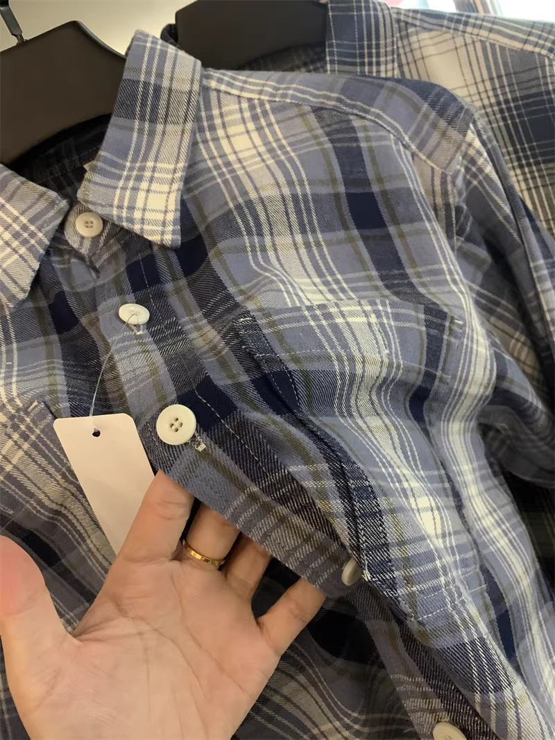 - Don Quixote U+ phong cách phổ biến! Túi đôi bằng vải cotton mềm mại! Áo sơ mi dài tay kẻ sọc unisex hợp thời trang.