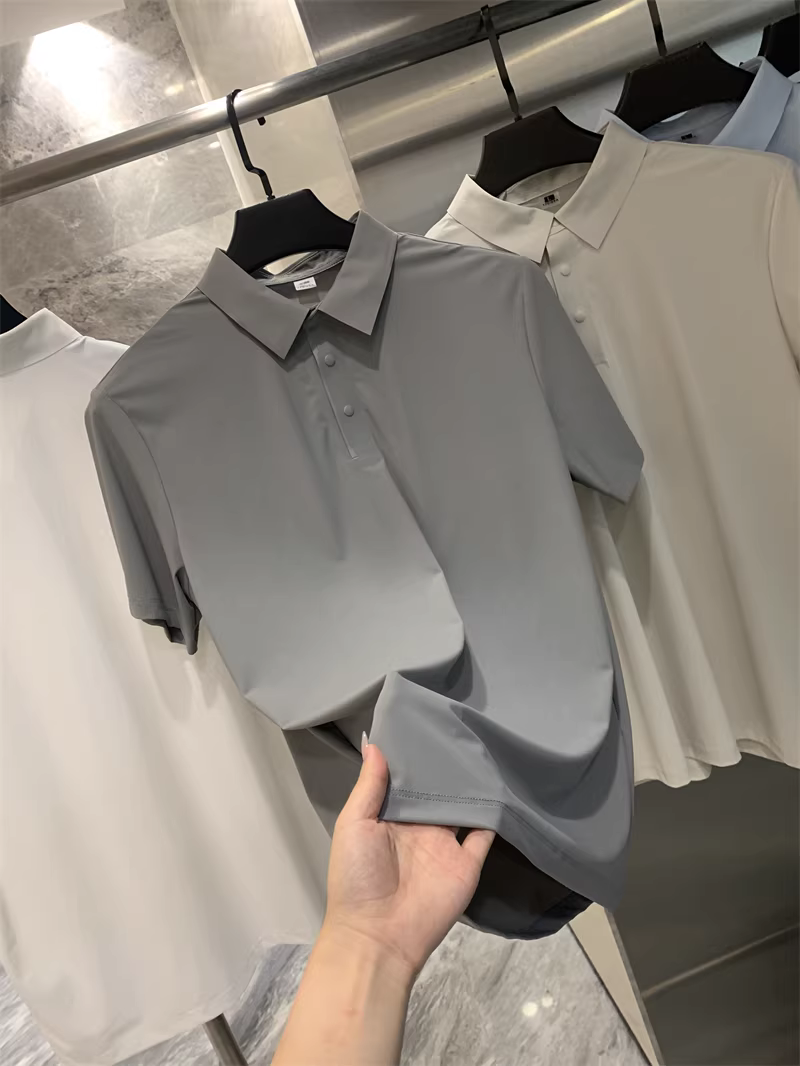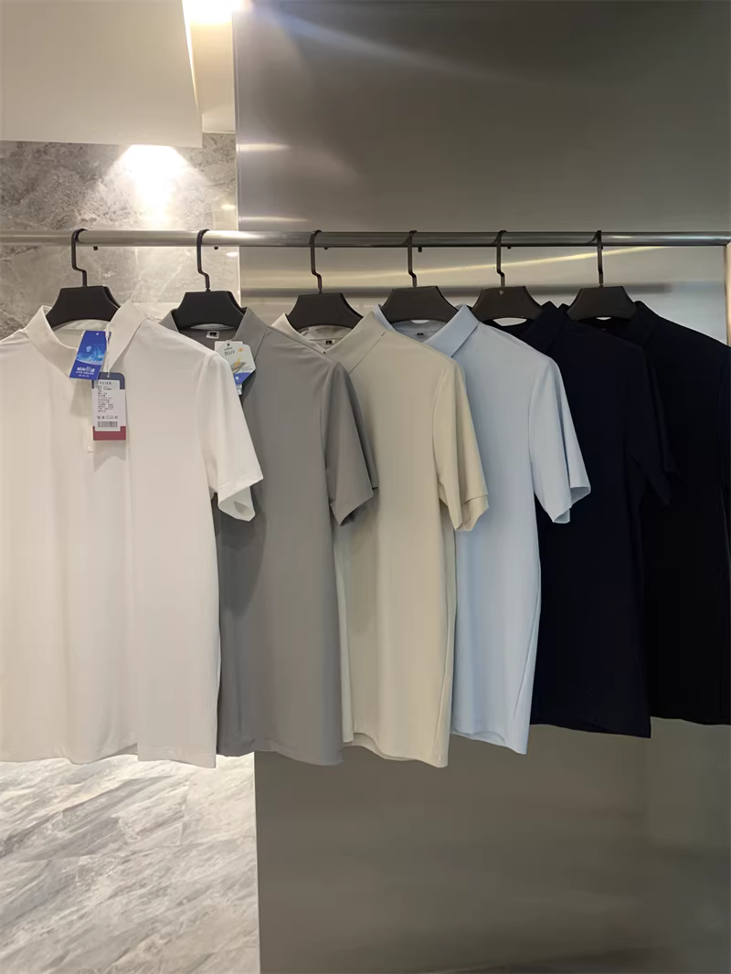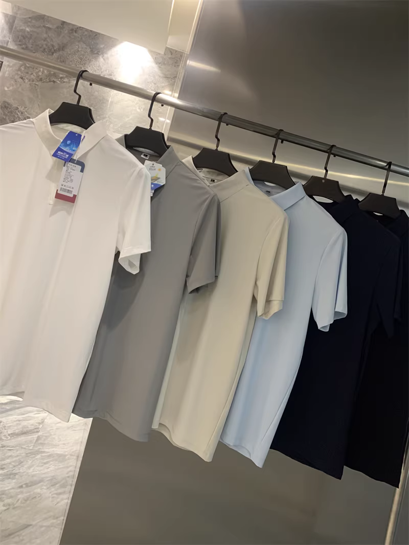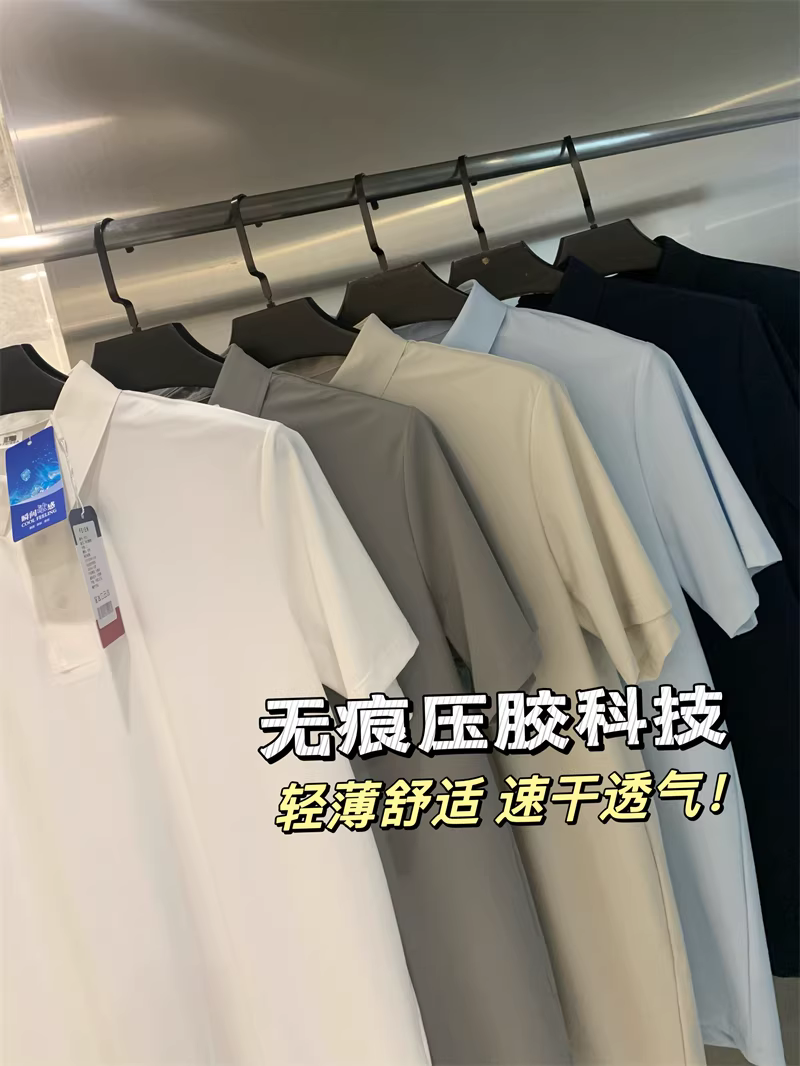 Don Quixote Vải lụa mát lạnh tuyệt vời! Công nghệ keo dán liền mạch! Áo thun nam tay ngắn cổ bẻ nhanh khô