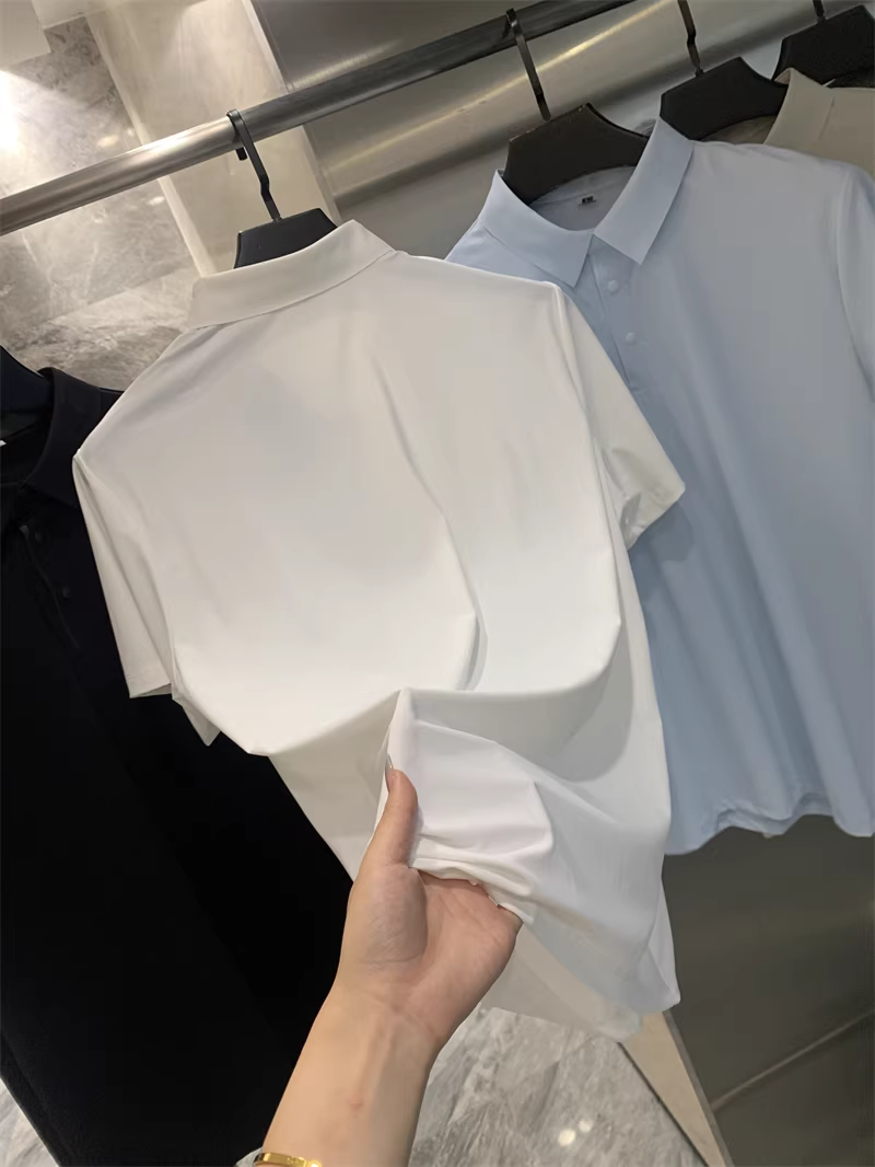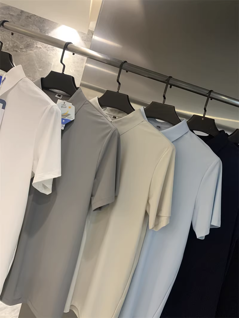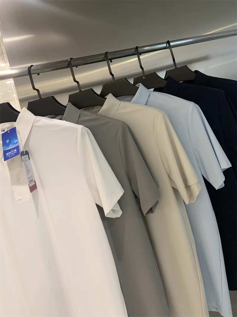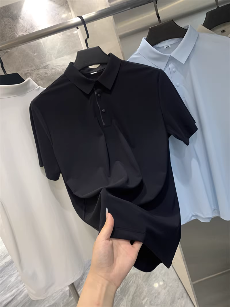 Don Quixote Vải lụa mát lạnh tuyệt vời! Công nghệ keo dán liền mạch! Áo thun nam tay ngắn cổ bẻ nhanh khô