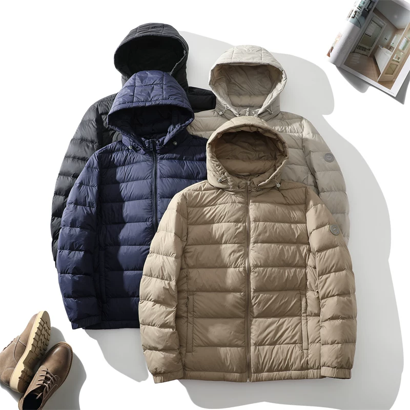 Dòng áo khoác lông cừu nhẹ và ấm Don Quixote! 90% lông vũ vịt! Áo khoác lông vũ có mũ trùm đầu tháo rời, giữ ấm mùa đông dành cho nam
