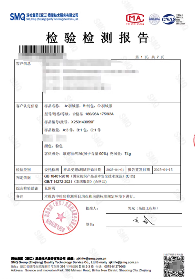 | XL | 肩宽48.7 | 胸围120 | 袖长63.2 | 衣长68.5 | 充绒量74g |