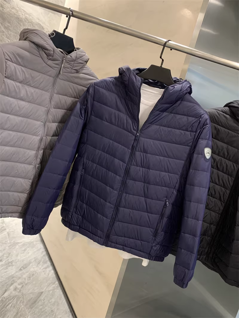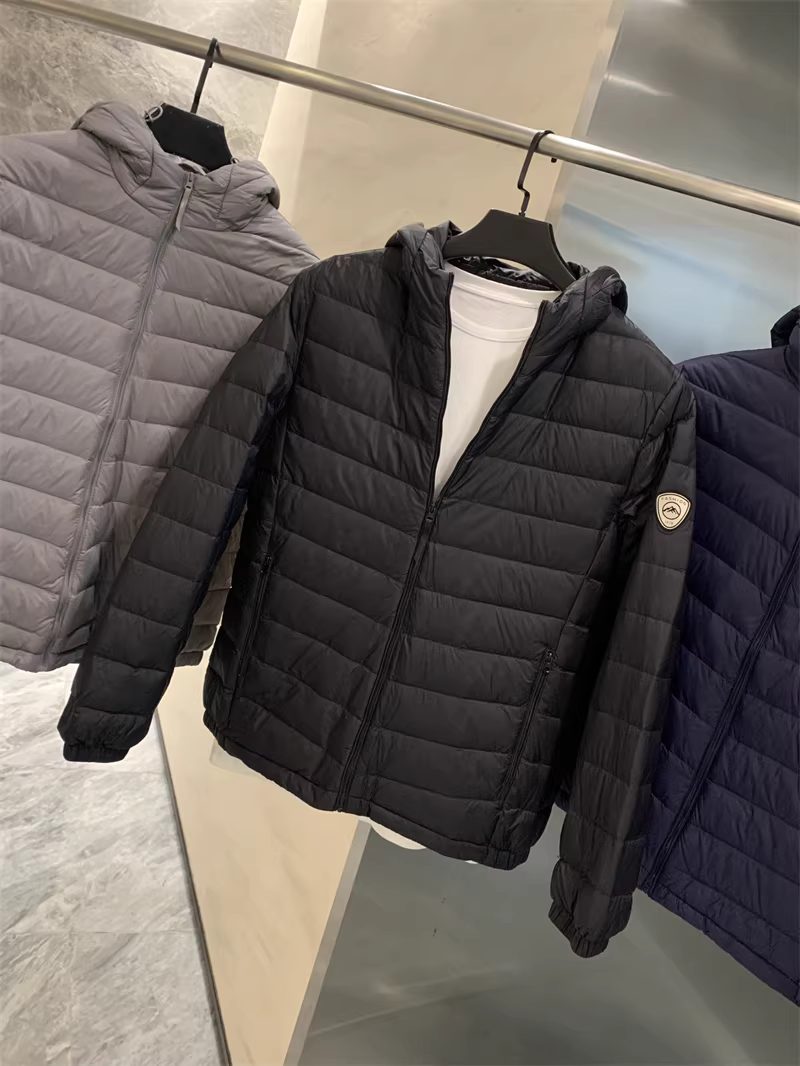 - Dòng áo khoác nhẹ Don Quixote! Kiểu dáng cổ điển với chất liệu dệt kim sọc! Áo khoác phao có cổ đứng/mũ trùm đầu mùa đông dành cho nam.
