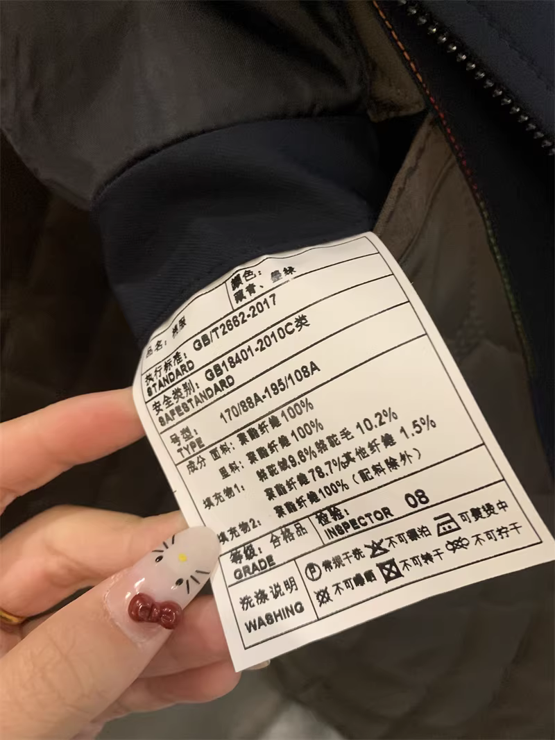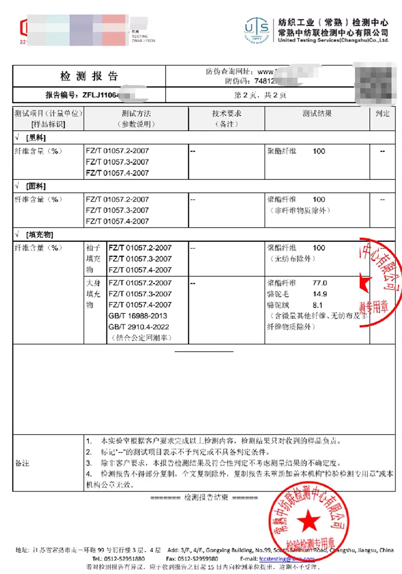 填充物1:9.6%骆驼绒+10.2%骆驼毛+78.7%聚酯纤维+1.5%其他纤维