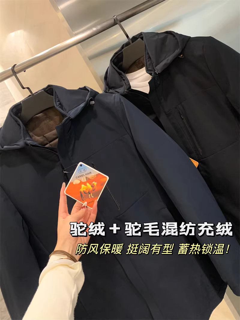 Dòng sản phẩm dành cho doanh nhân Don Quixote! Len lạc đà + ruột áo lông lạc đà! Áo khoác cotton có mũ trùm đầu dành cho nam.