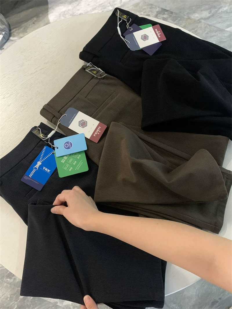 Dòng sản phẩm Don Quixote! Chất liệu dệt kim có gân! Quần âu nam thời trang đa năng, dáng thẳng.
