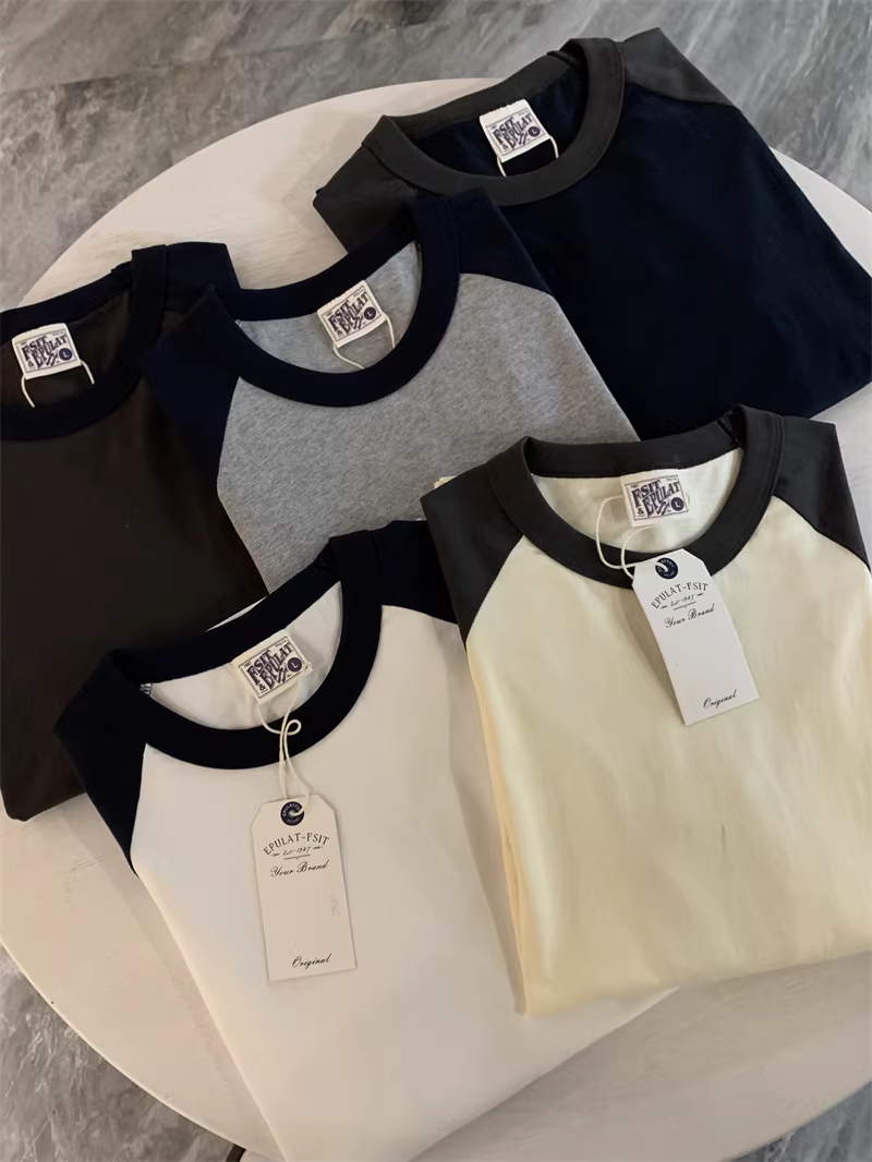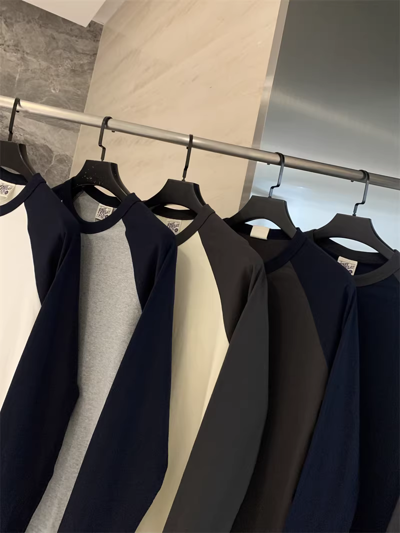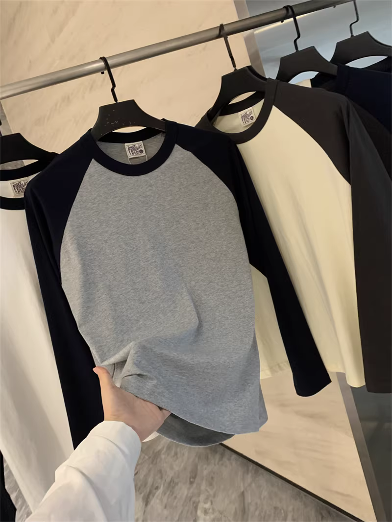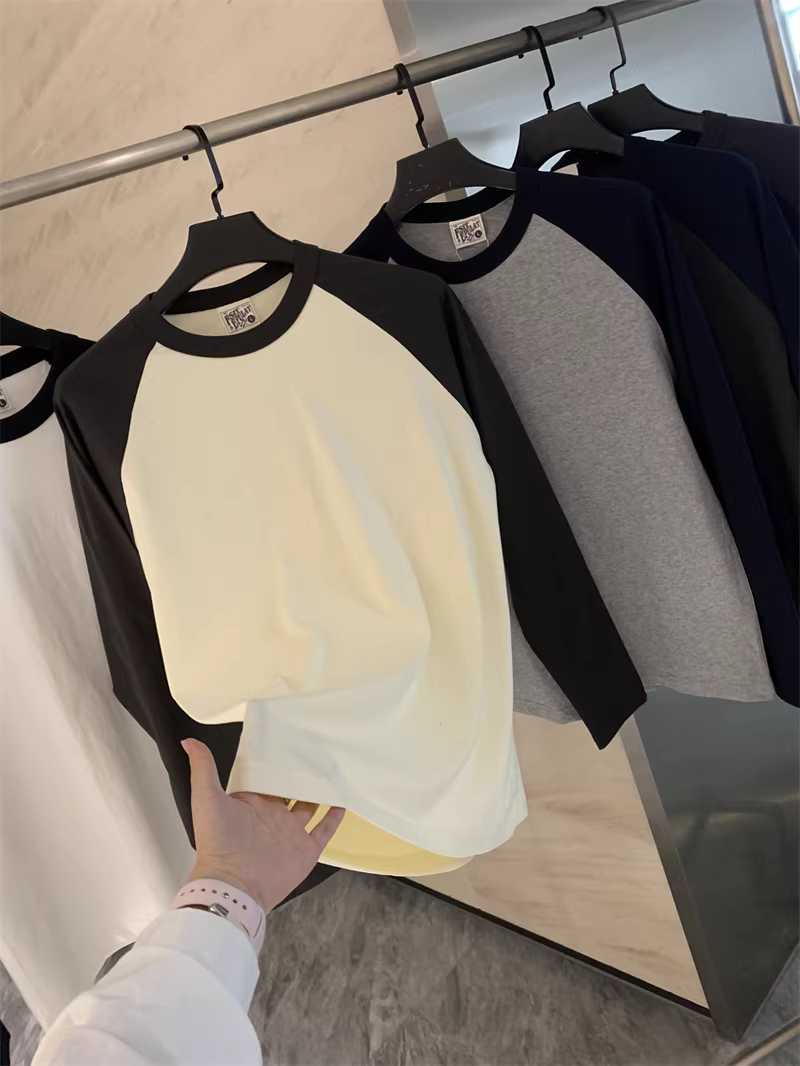 Dòng sản phẩm Don Quixote! Chất liệu vải cotton chải kỹ! Áo thun nam tay raglan phối màu.