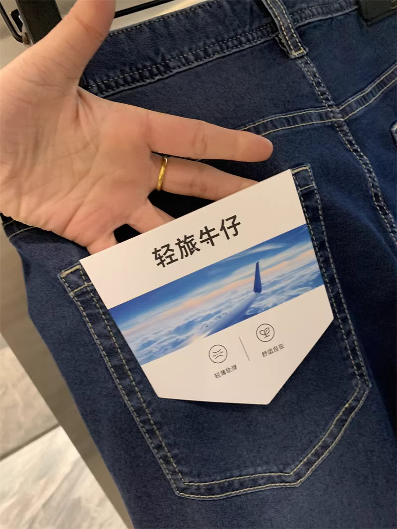 Dòng sản phẩm nhẹ Don Quixote! Chất liệu cotton pha, mềm mại và nhẹ nhàng, quần âu ống đứng, quần jean nam.