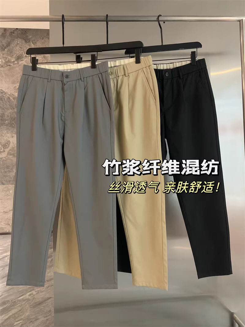 Dòng sản phẩm sợi tre Don Quixote! Thoáng khí và co giãn bốn chiều! Quần âu nam ống đứng màu trơn đa năng.