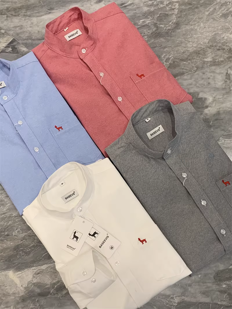Dòng thiết kế của Don Quixote của Đan Mạch! Chất liệu vải Oxford hoàn toàn bằng cotton! Áo sơ mi dài tay màu trơn thêu màu tương phản