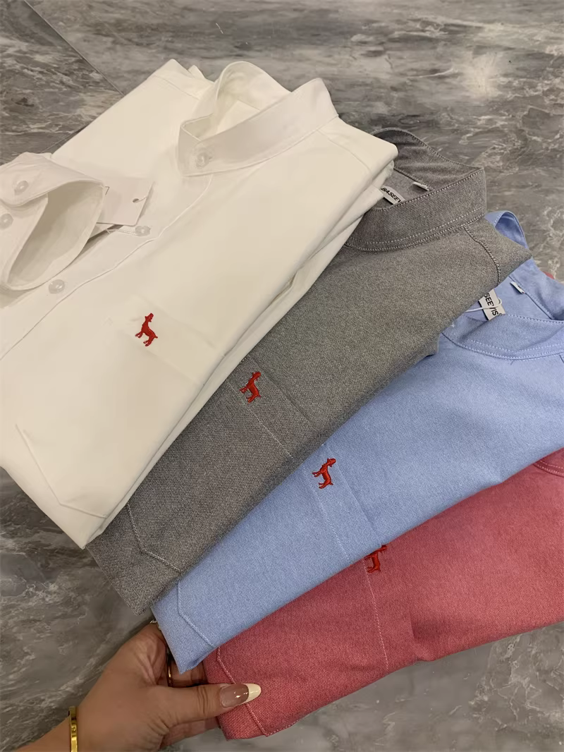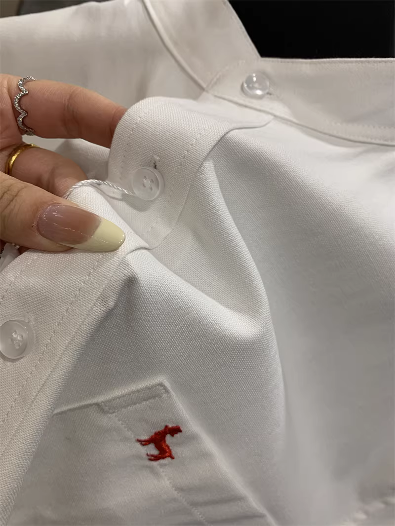 - Dòng thiết kế của Don Quixote của Đan Mạch! Chất liệu vải Oxford hoàn toàn bằng cotton! Áo sơ mi dài tay màu trơn thêu màu tương phản