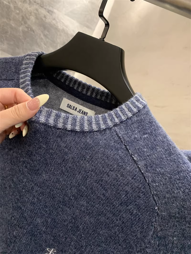 Dòng thiết kế của Don Quixote, nhà thiết kế người Bồ Đào Nha! 65% len! Áo len dệt kim cổ tròn ấm áp, đa năng cho mùa thu đông dành cho nam.