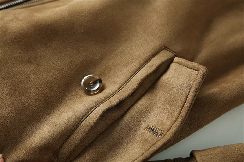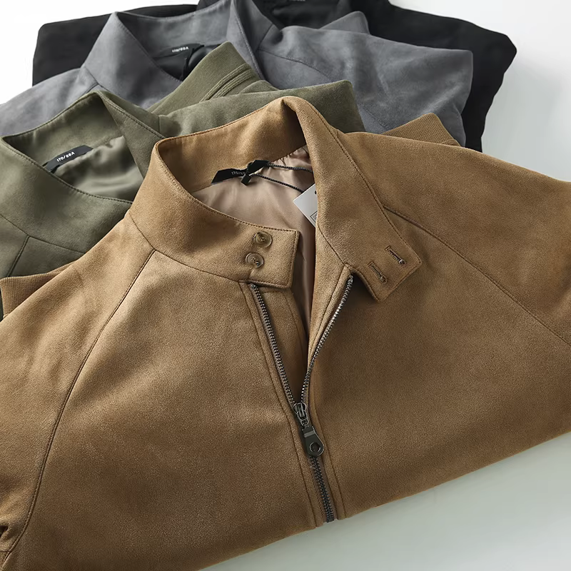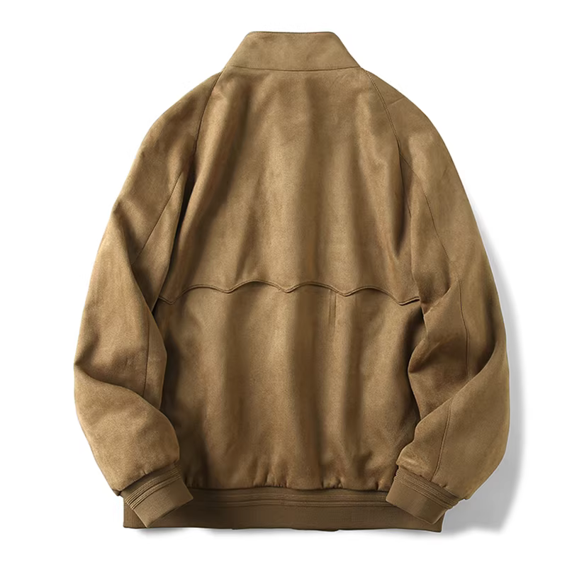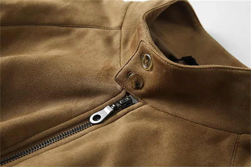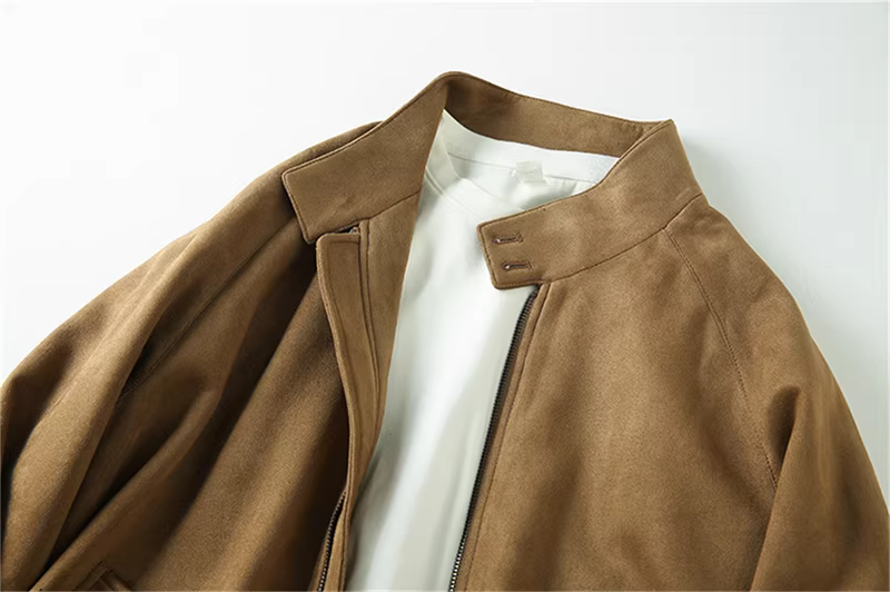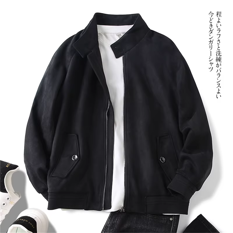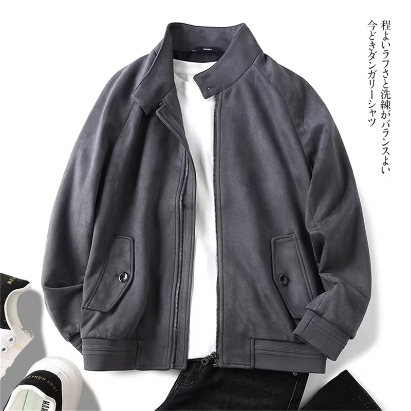 Dòng thiết kế Don Quixote! Áo khoác nam màu trơn, cổ đứng, chất liệu da lộn nhập khẩu, mềm mại và thoải mái.