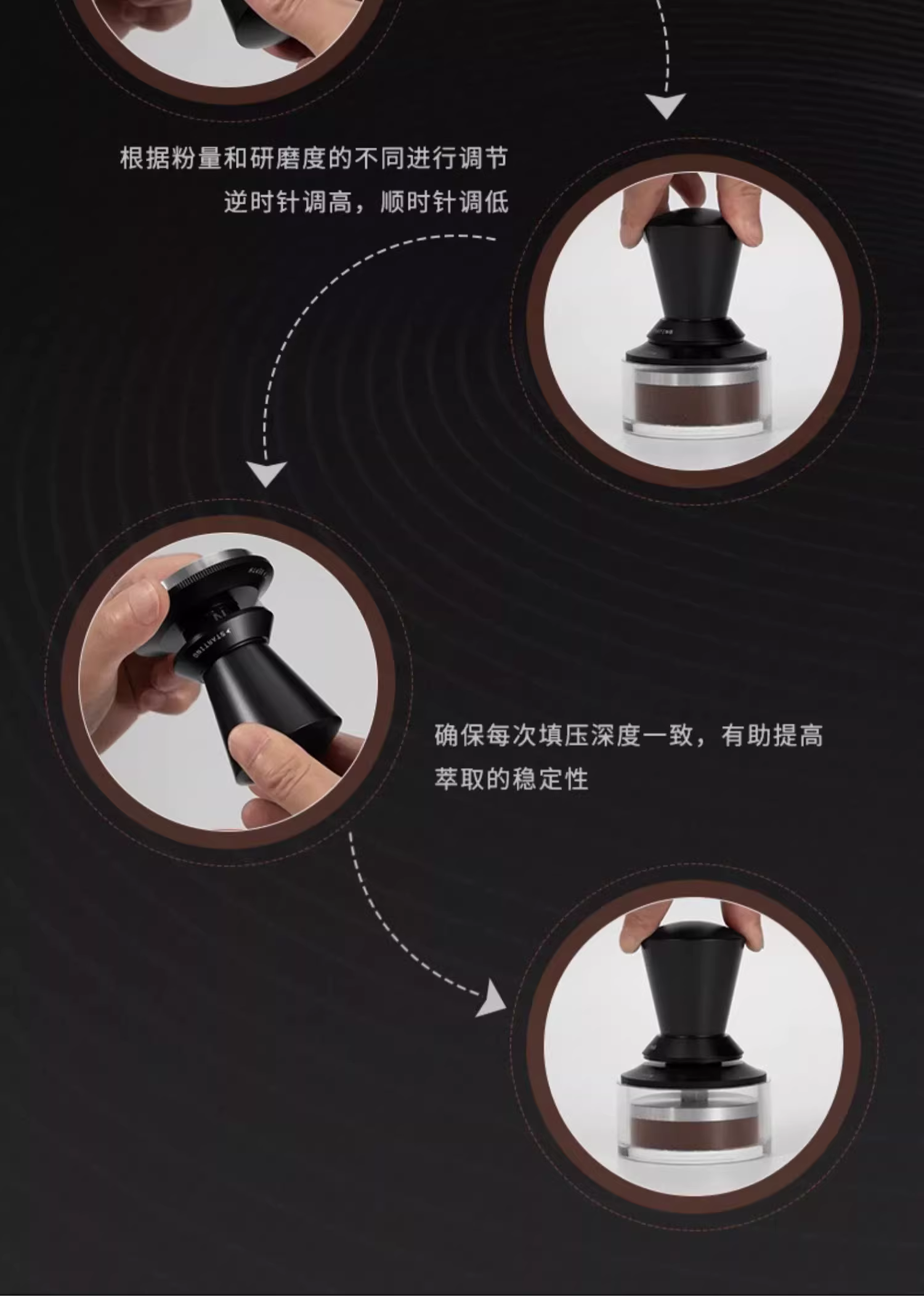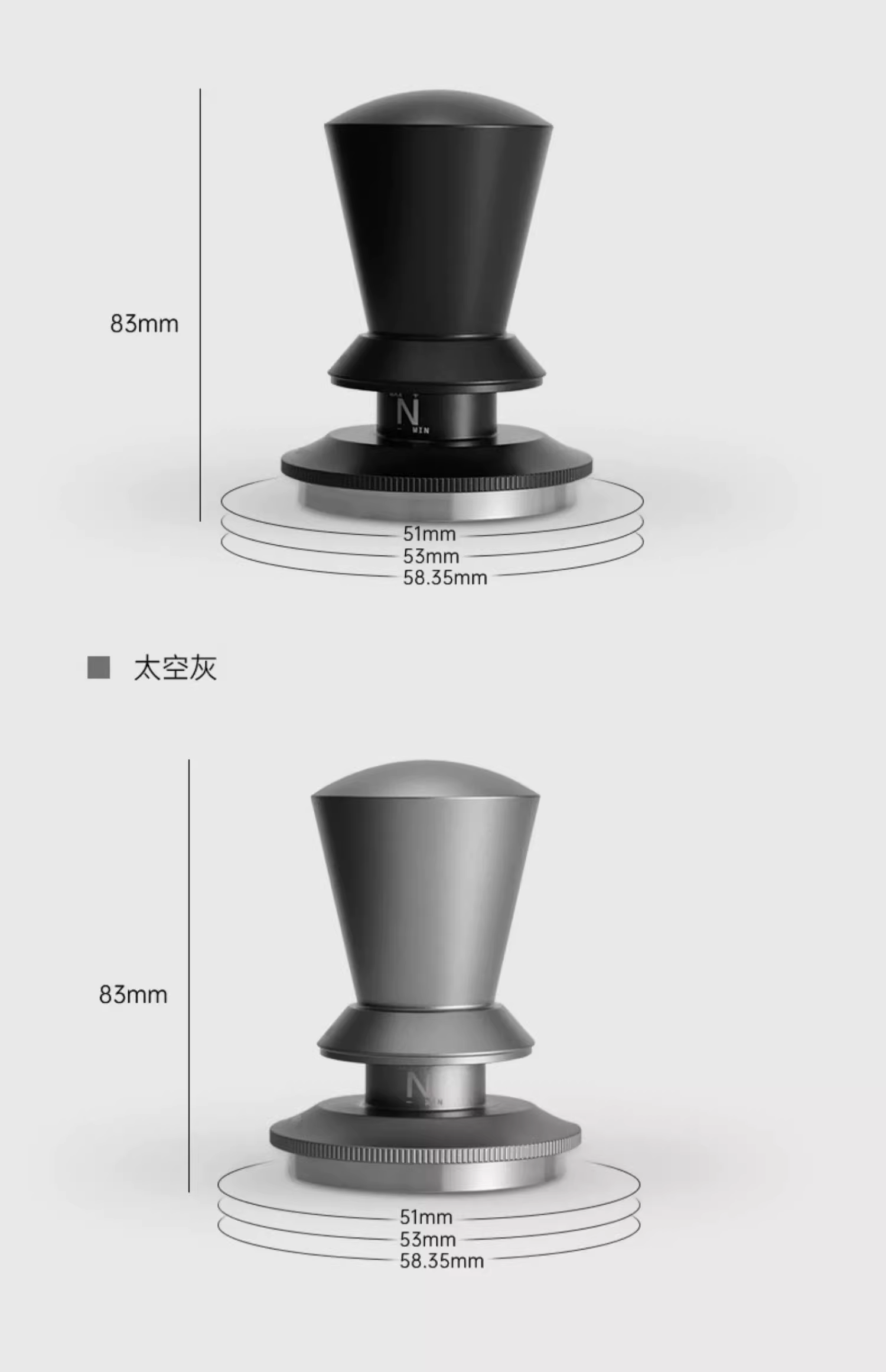 - Dụng cụ nén cà phê MUVNA của Ý với độ cao và mức độ có thể điều chỉnh vô hạn, 51/53/58,35mm