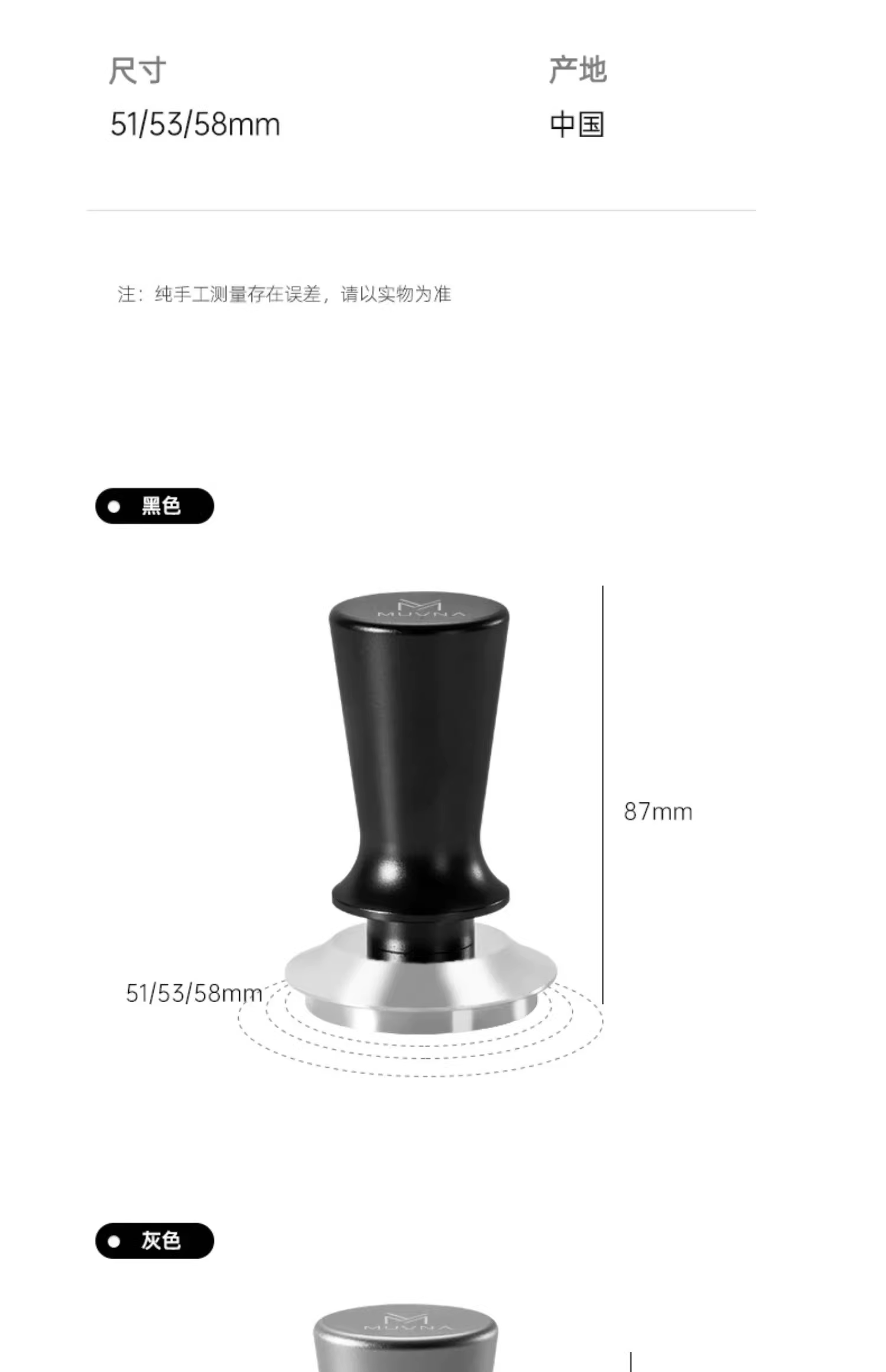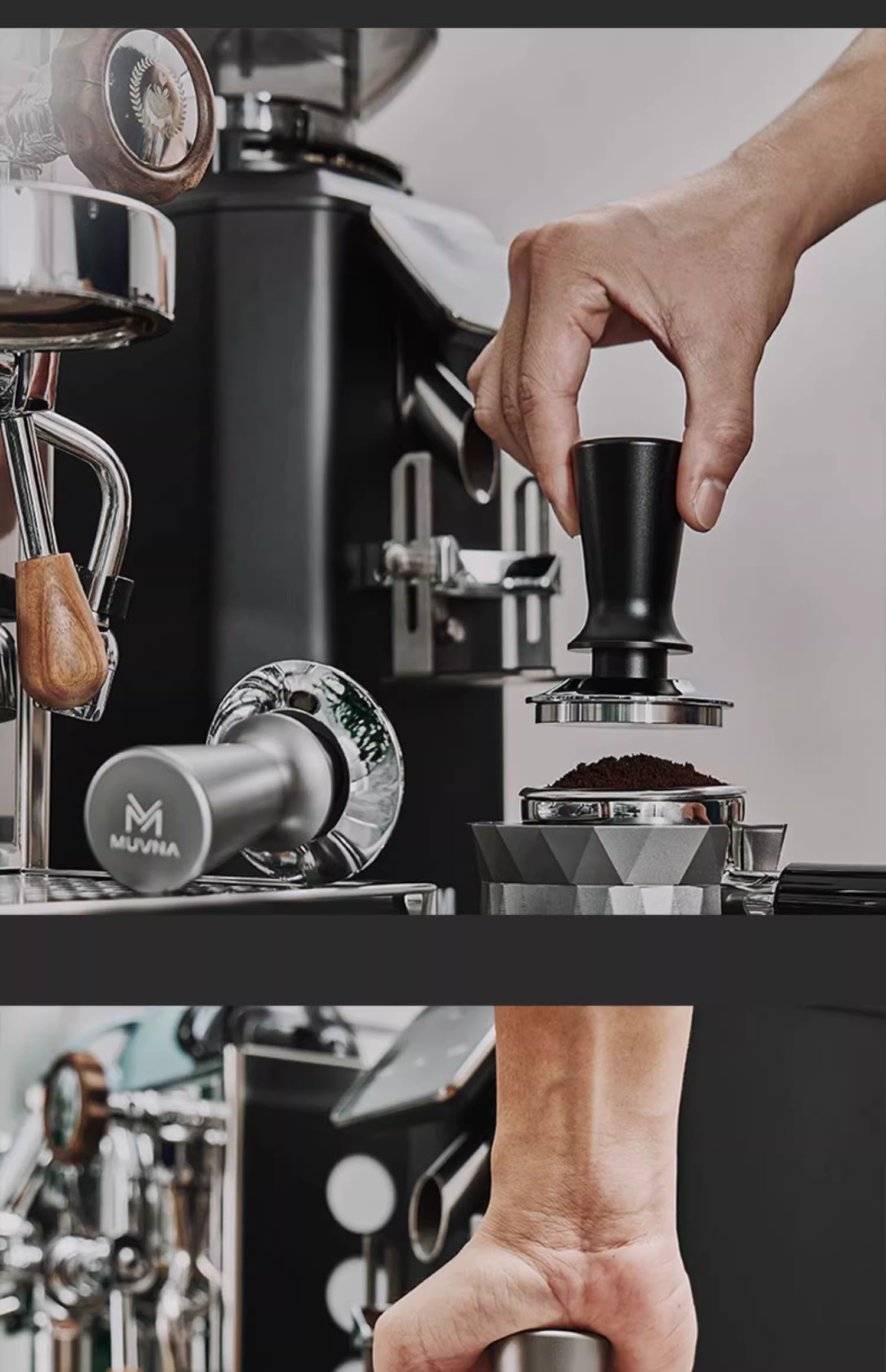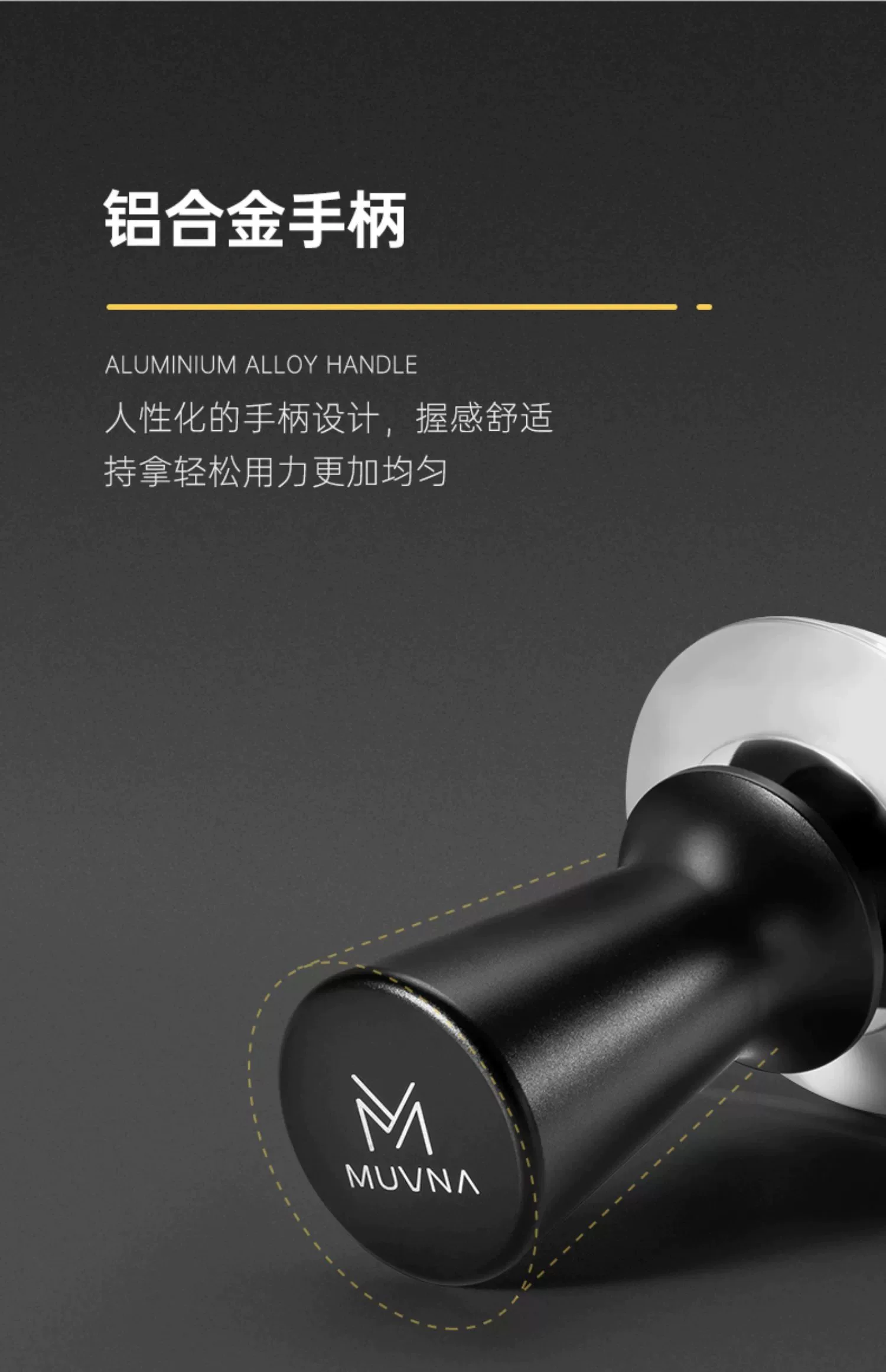 - Dụng cụ nén cà phê MUVNA kiểu Ý, tay cầm ngang, áp suất không đổi, kích thước 51/53/58mm