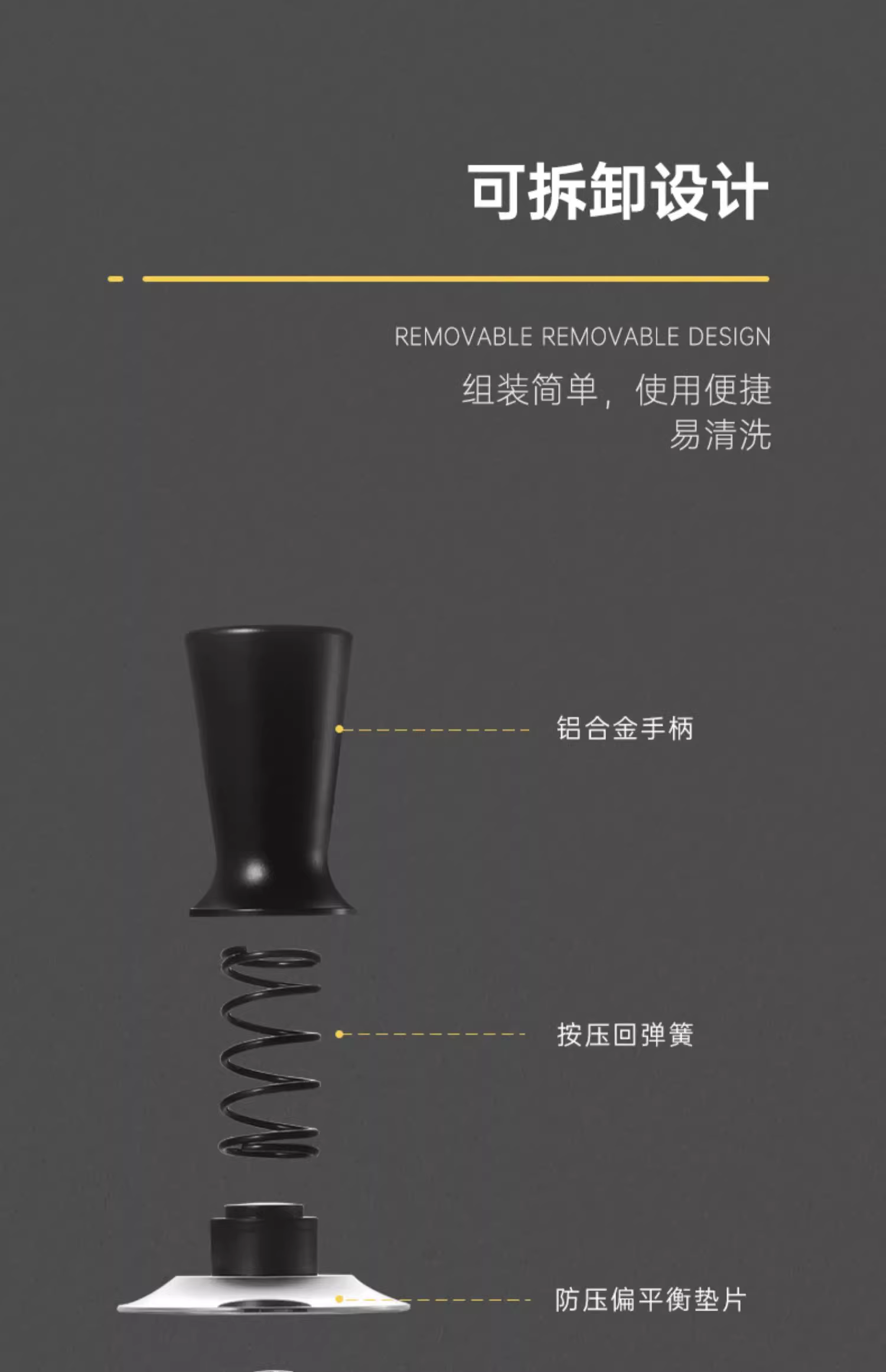 Dụng cụ nén cà phê MUVNA kiểu Ý, tay cầm ngang, áp suất không đổi, kích thước 51/53/58mm