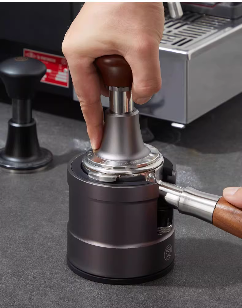 Dụng cụ pha cà phê không cần tay, đế giữ cà phê không đáy, đế giữ tamper, dụng cụ phân phối cà phê không cần tay, đế tamper, dụng cụ làm nóng cà phê, đế tamper 58mm, dụng cụ làm nóng cà phê cứng đầu