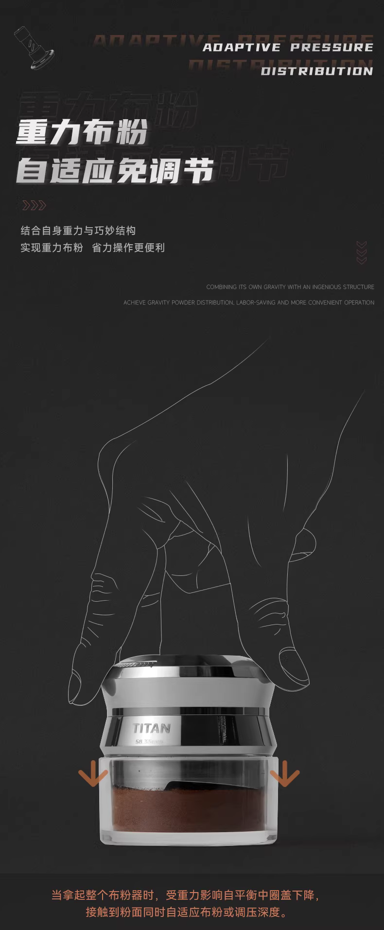Dụng cụ phân phối bột cà phê MUVNA Titan 58mm, dụng cụ ép chắc chắn có chiều cao điều chỉnh