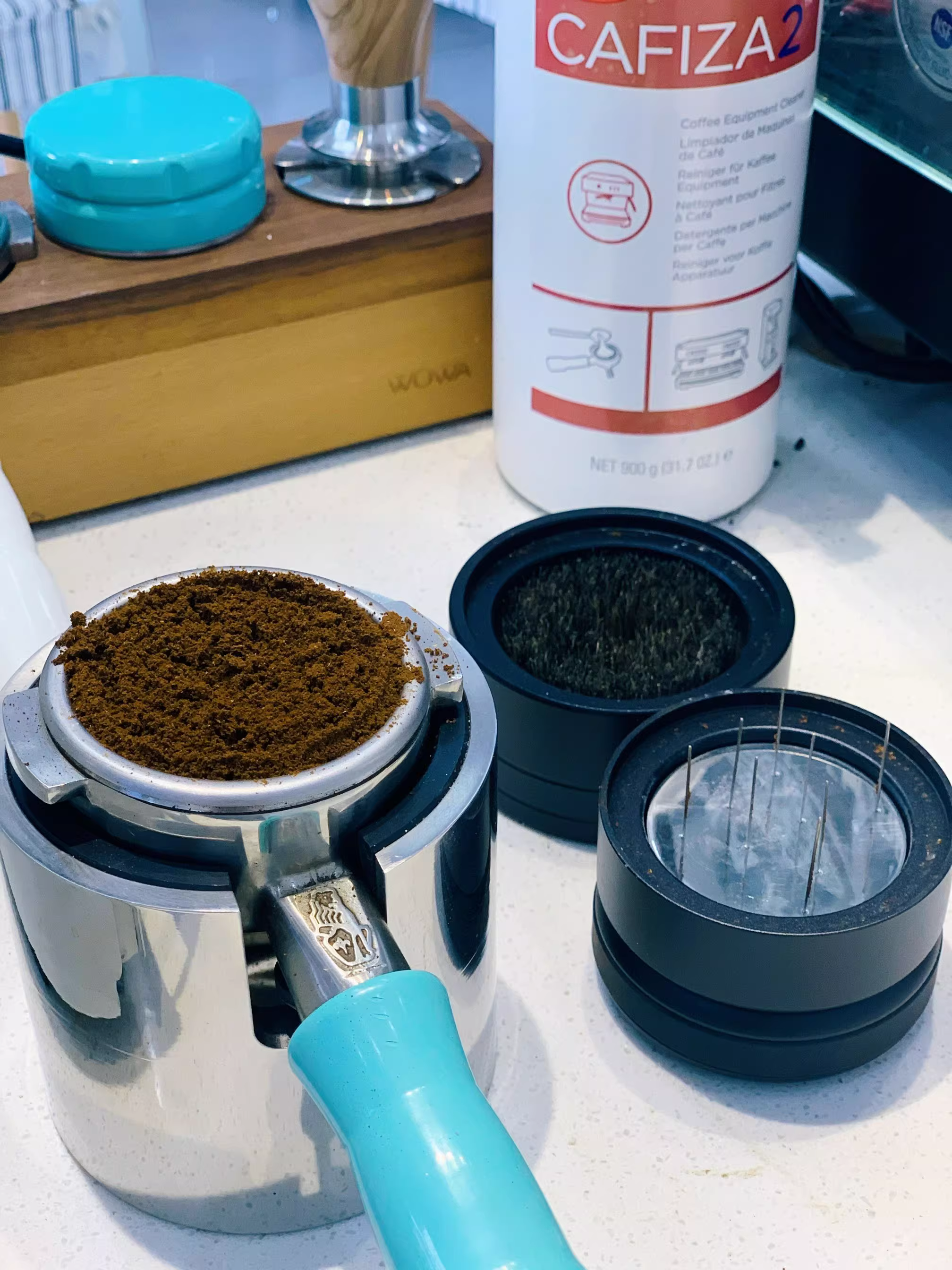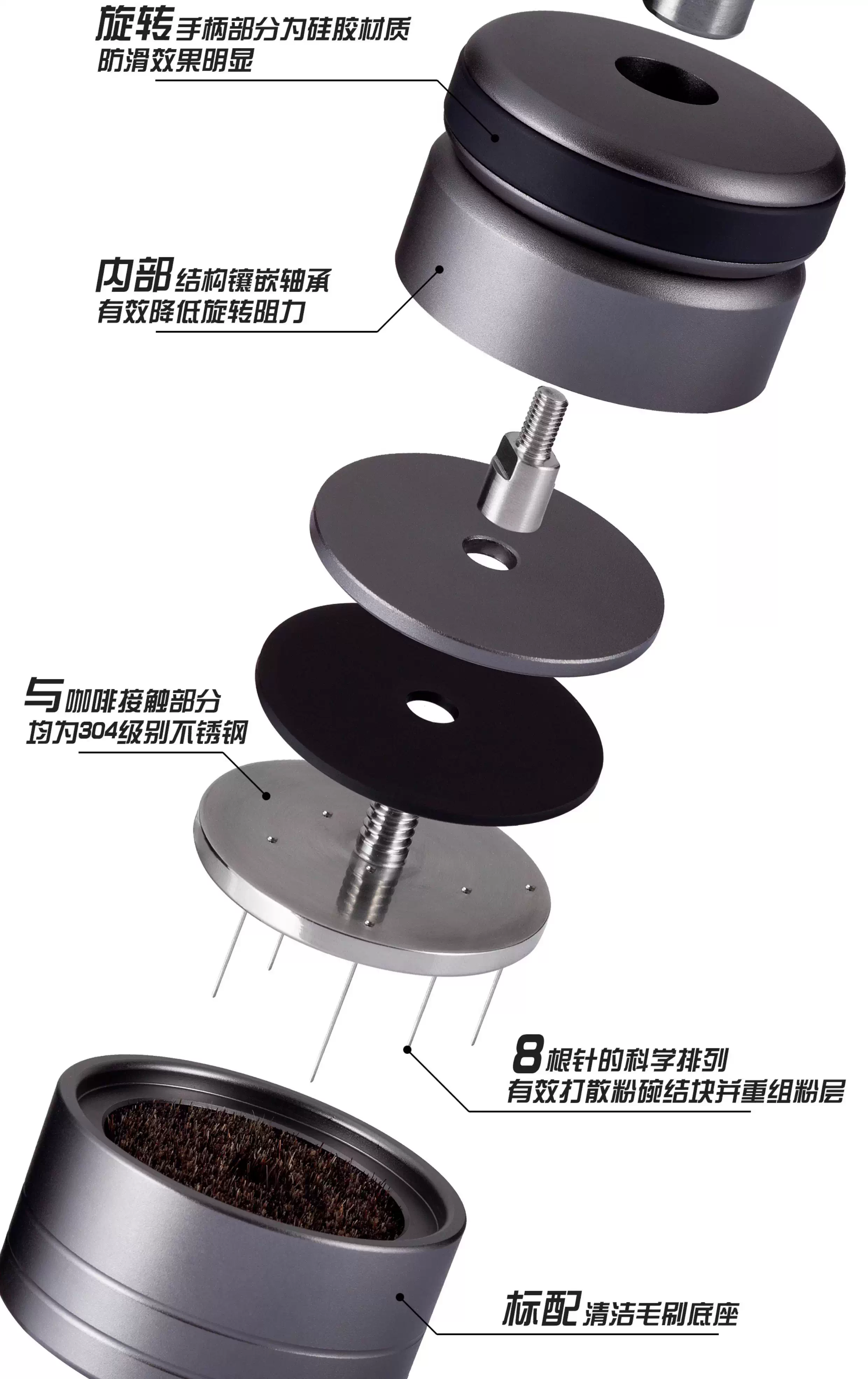 Dụng cụ phân phối cà phê dạng bánh quy cứng đầu dành cho cà phê espresso, loại xoay, làm tan cục, chiết xuất bột đều, 58