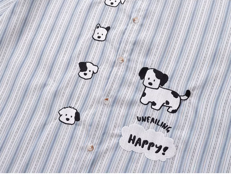 - From Mars Fun Dog Print Sọc Ve áo Áo sơ mi dài tay kiểu Nhật cổ điển dáng rộng vừa vặn đa năng