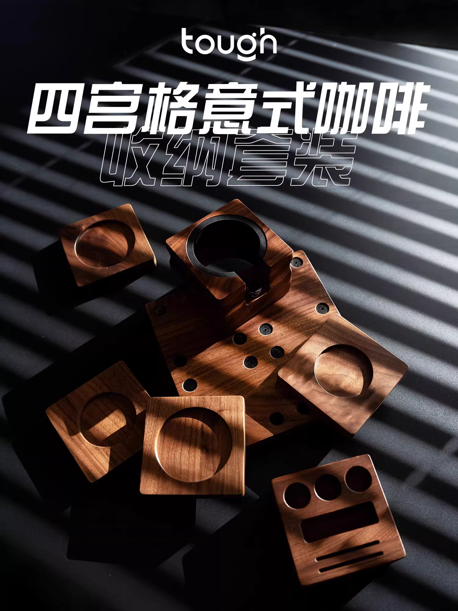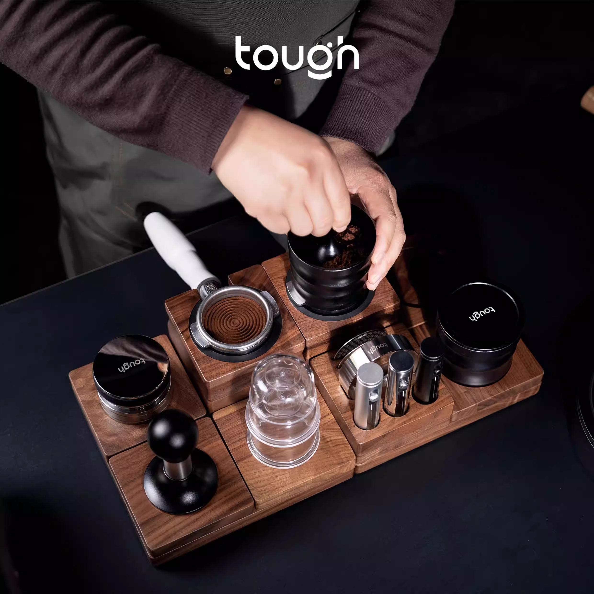 Giá để cà phê kiểu Ý bốn ngăn, kết hợp trò chơi xếp hình, tay cầm, dụng cụ tán bột cà phê, dụng cụ phân phối bột cà phê