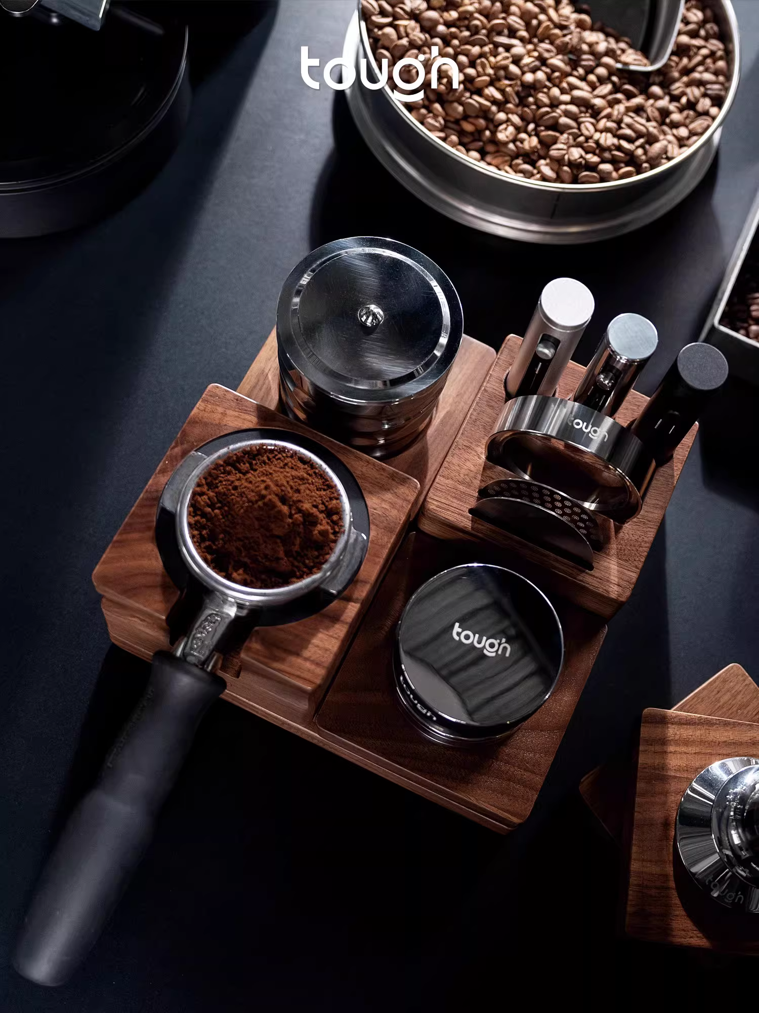 - Giá để cà phê kiểu Ý bốn ngăn, kết hợp trò chơi xếp hình, tay cầm, dụng cụ tán bột cà phê, dụng cụ phân phối bột cà phê