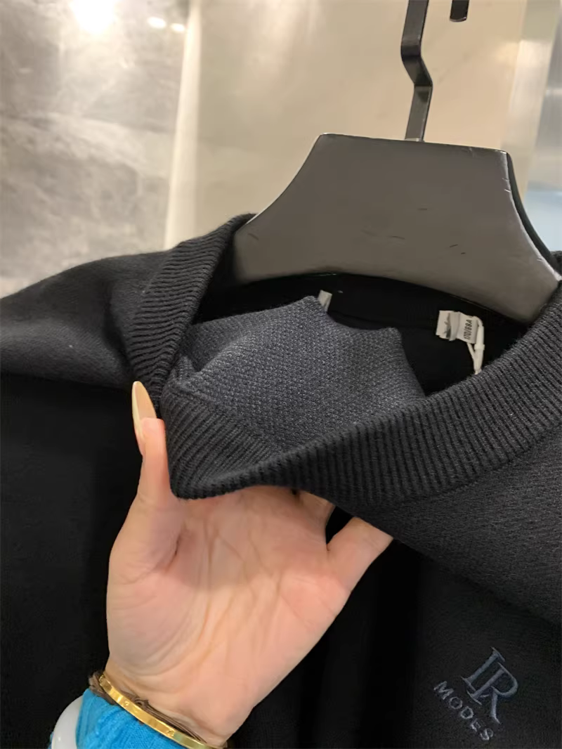 - Gia đình Don Quixote! Áo len dệt kim tinh tế! Áo len nam cổ tròn phối màu giữ ấm mùa thu đông.