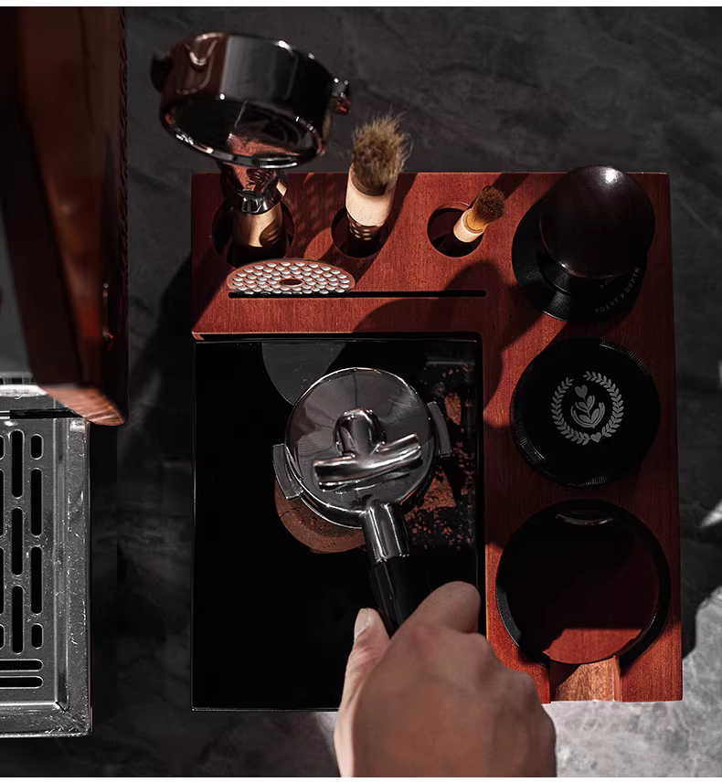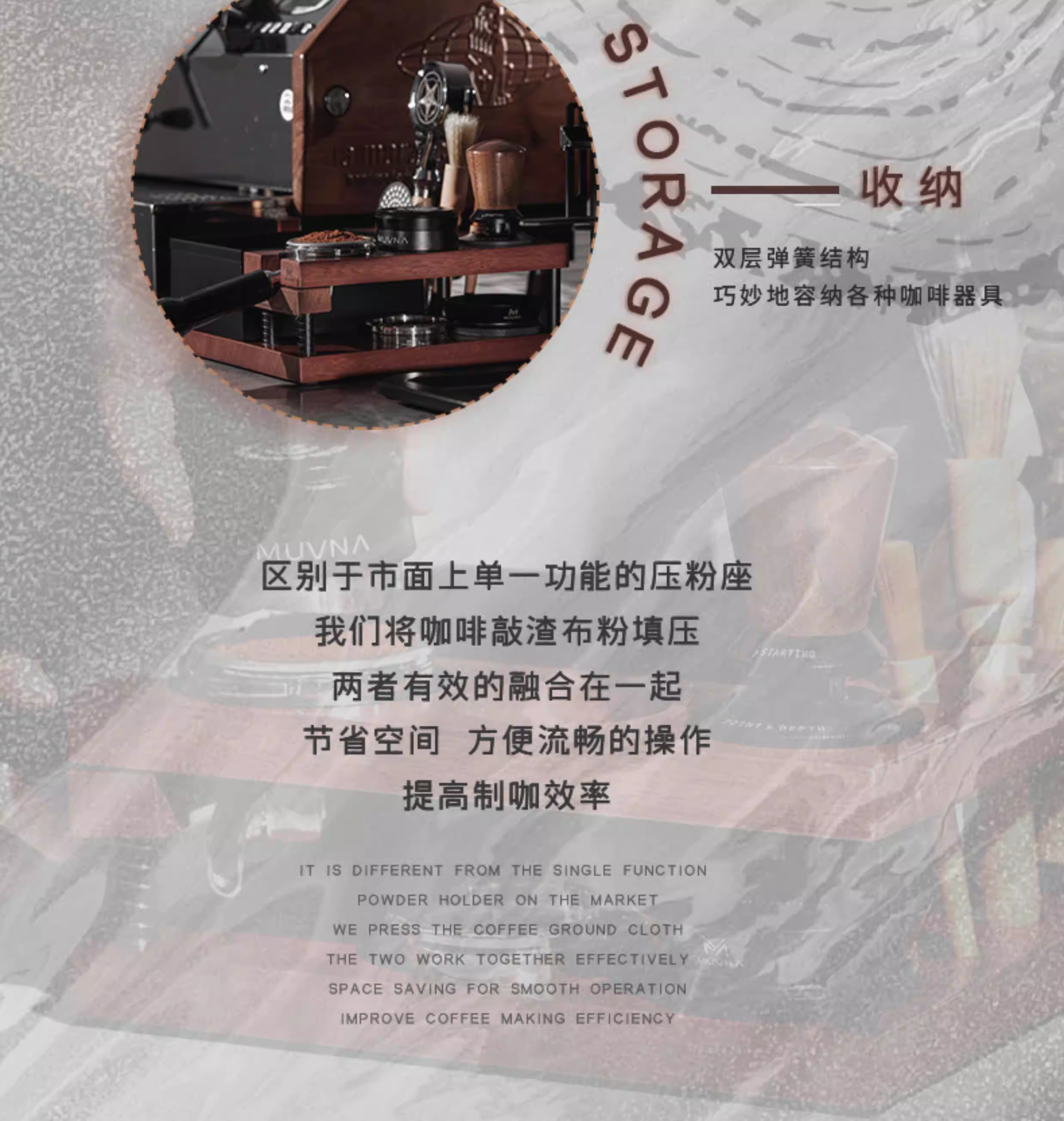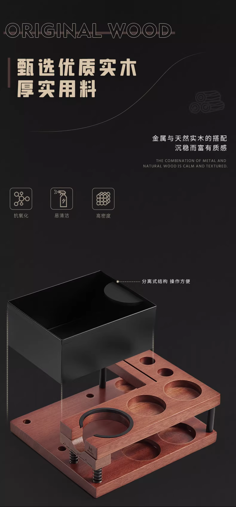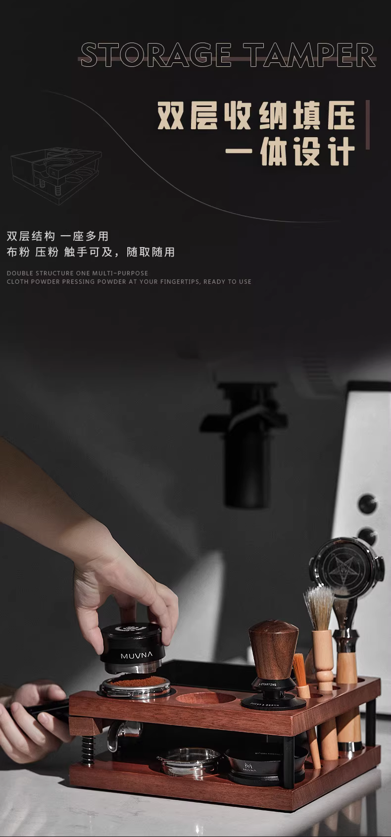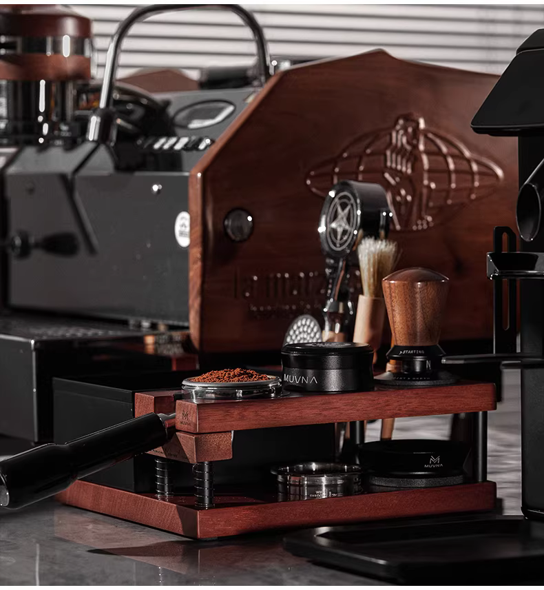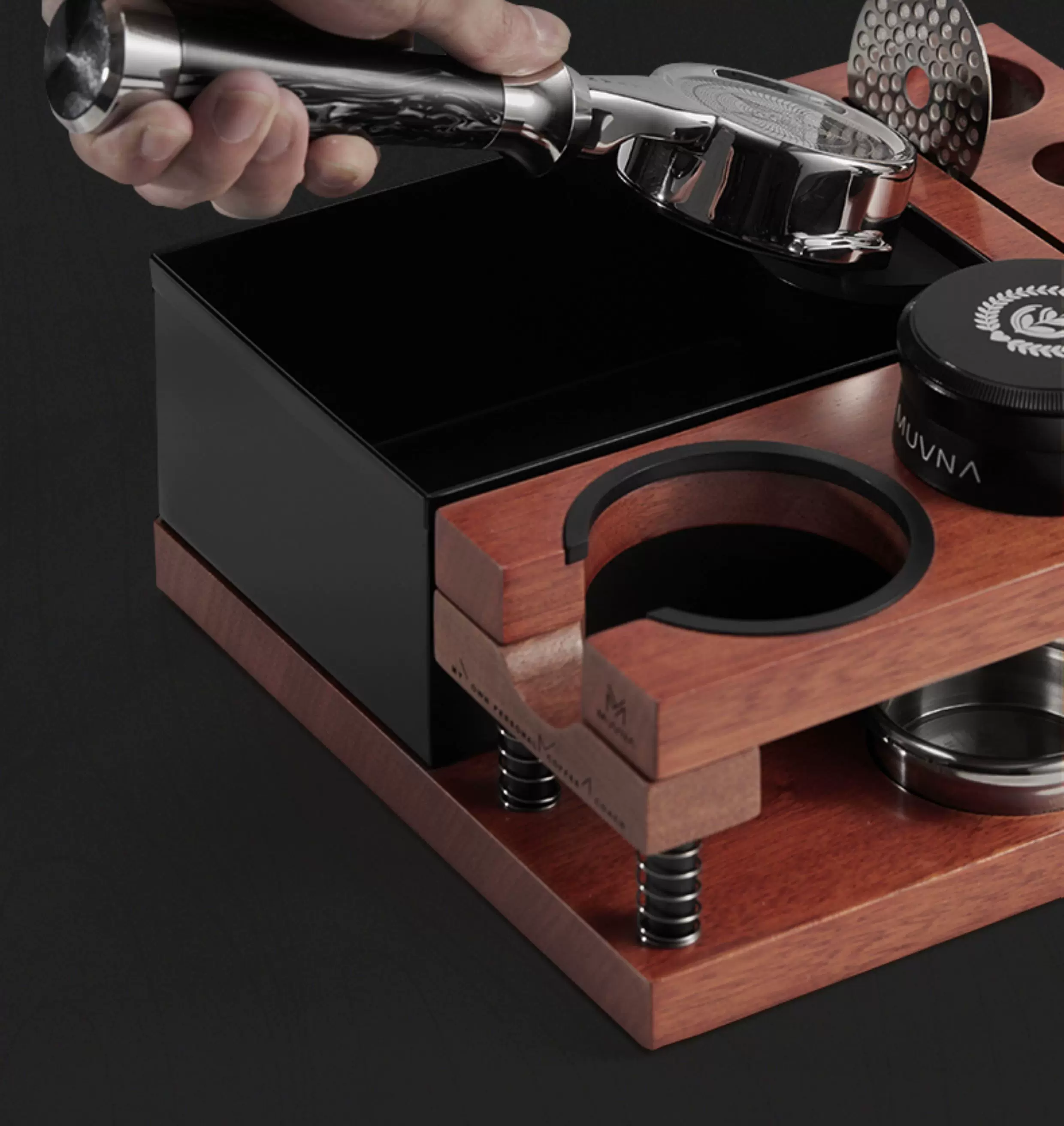 - Giá đỡ MUVNA, giá đỡ tamper, hộp đựng bã cà phê, giá để đồ quầy cà phê, gỗ chắc chắn lò xo 51/53/58