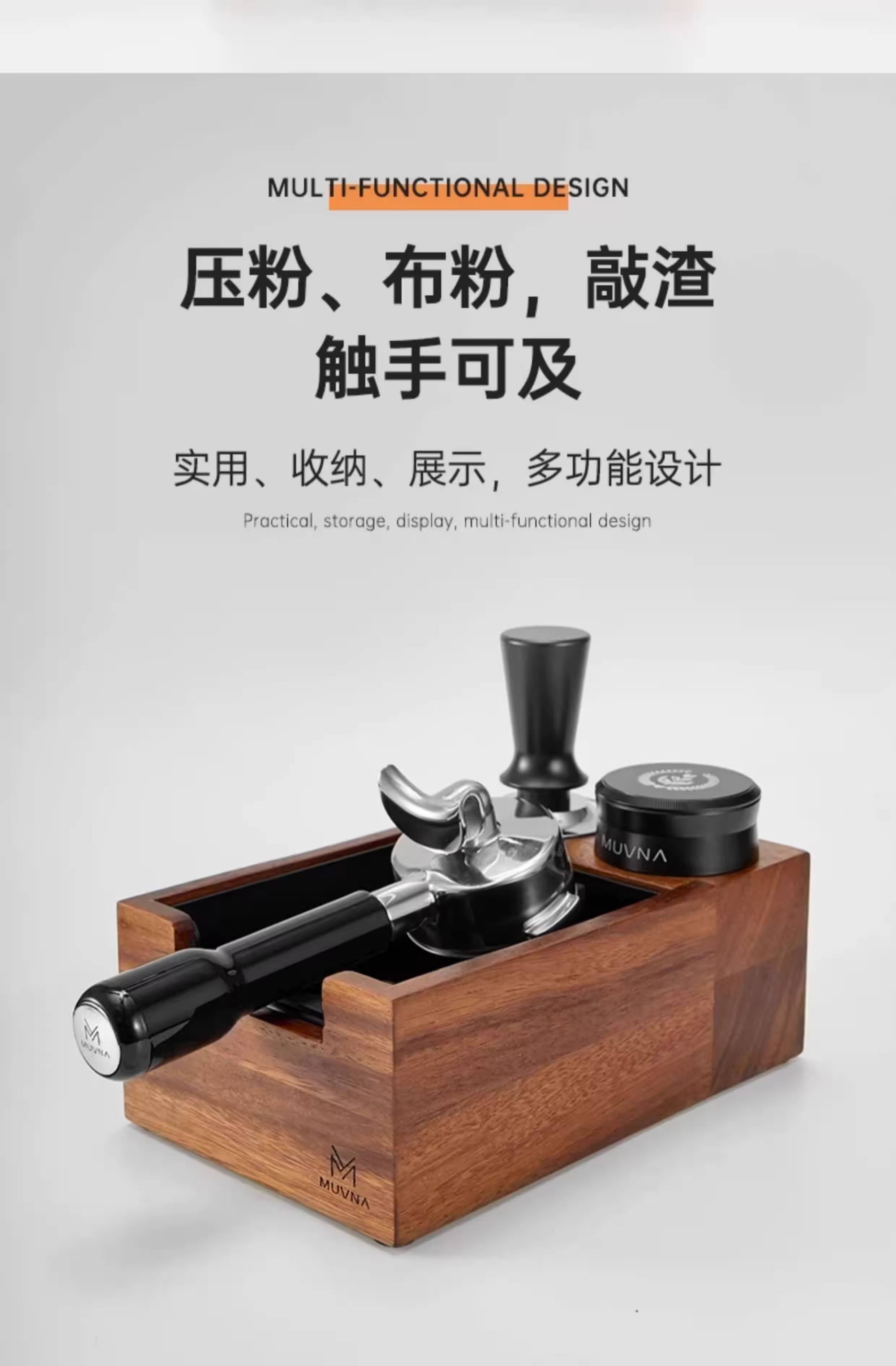 Giá đỡ tamper cà phê MUVNA 51/53/58mm, dụng cụ phân phối, đế tamper, hộp đựng bã cà phê