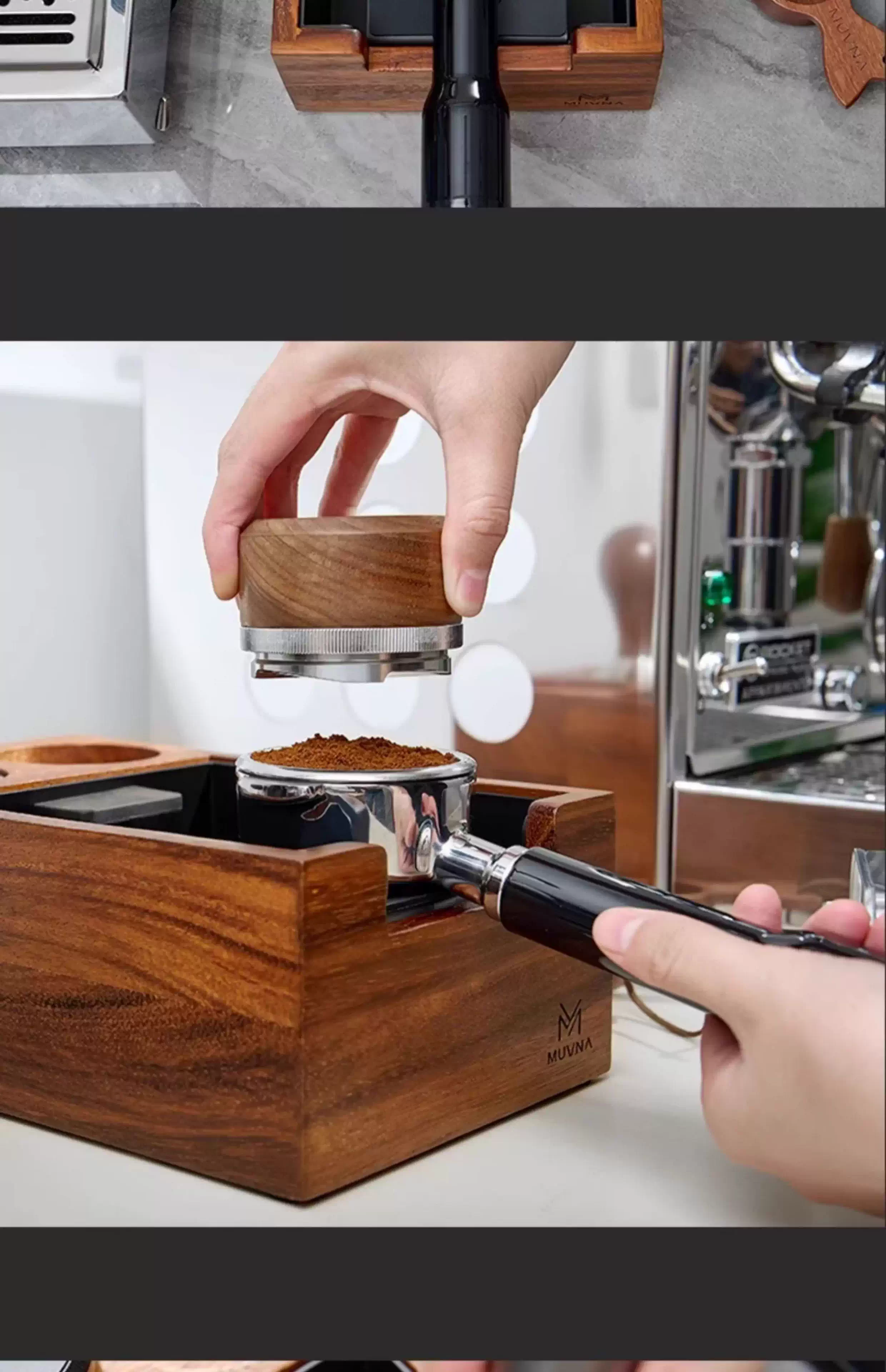 - Giá đỡ tamper cà phê MUVNA 51/53/58mm, dụng cụ phân phối, đế tamper, hộp đựng bã cà phê