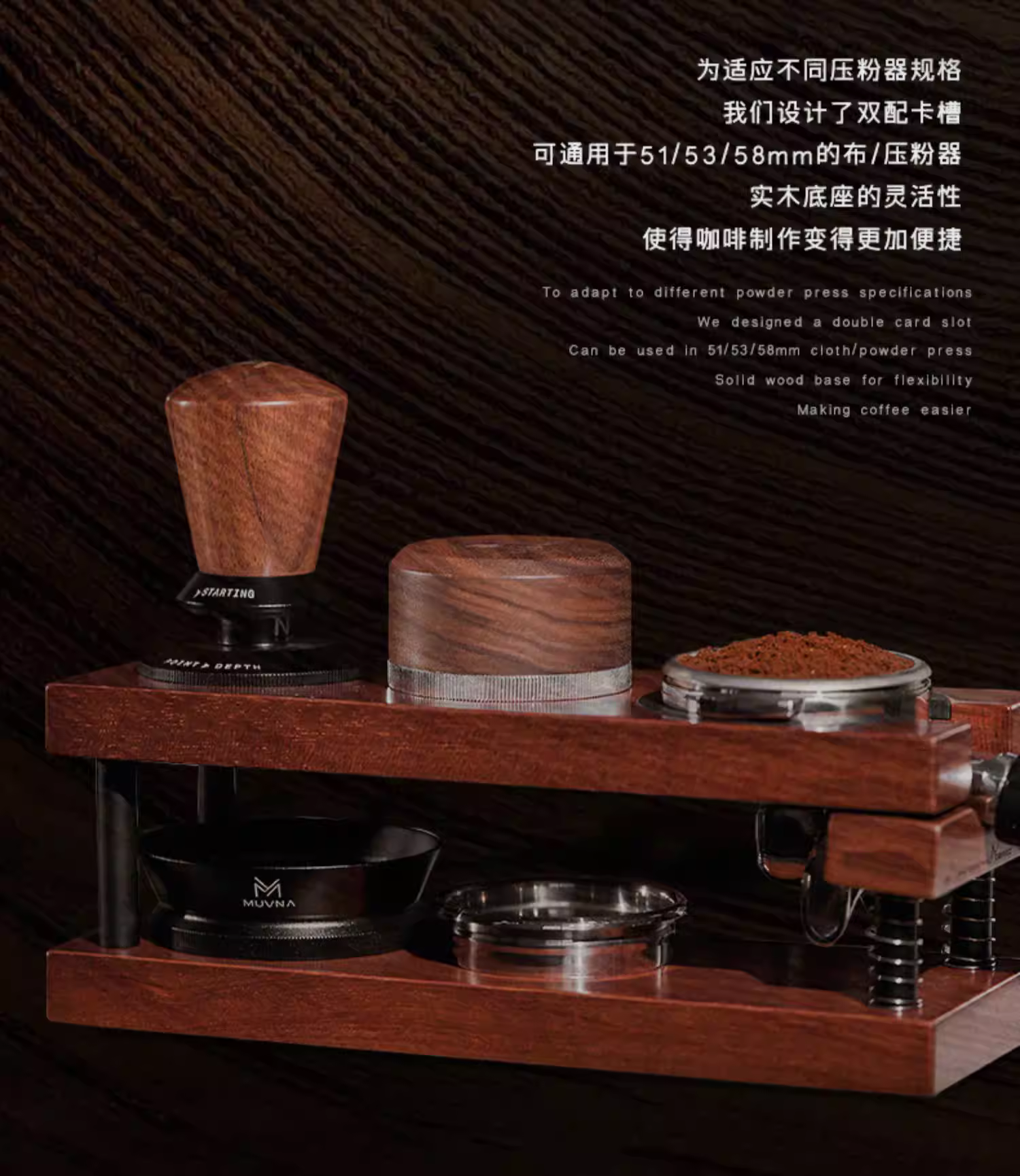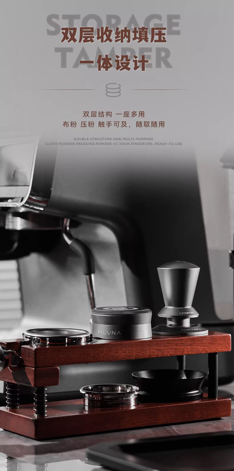 - Giá đỡ tamper, dụng cụ phân phối bột cà phê, búa tamper, hộp đựng MUVNA 51/53/58mm