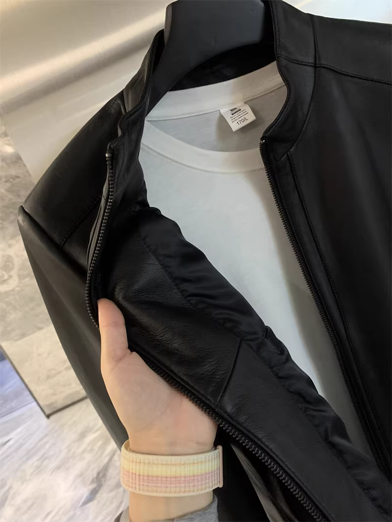 - Giảm giá Don Quixote! Áo khoác da cừu thật! Áo khoác da thật cổ đứng mùa thu/đông dành cho nam