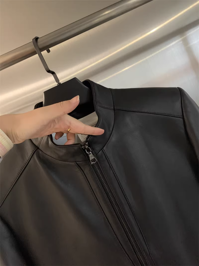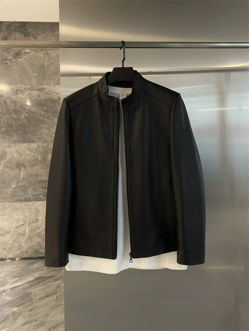 Giảm giá Don Quixote! Áo khoác da cừu thật! Áo khoác da thật cổ đứng mùa thu/đông dành cho nam