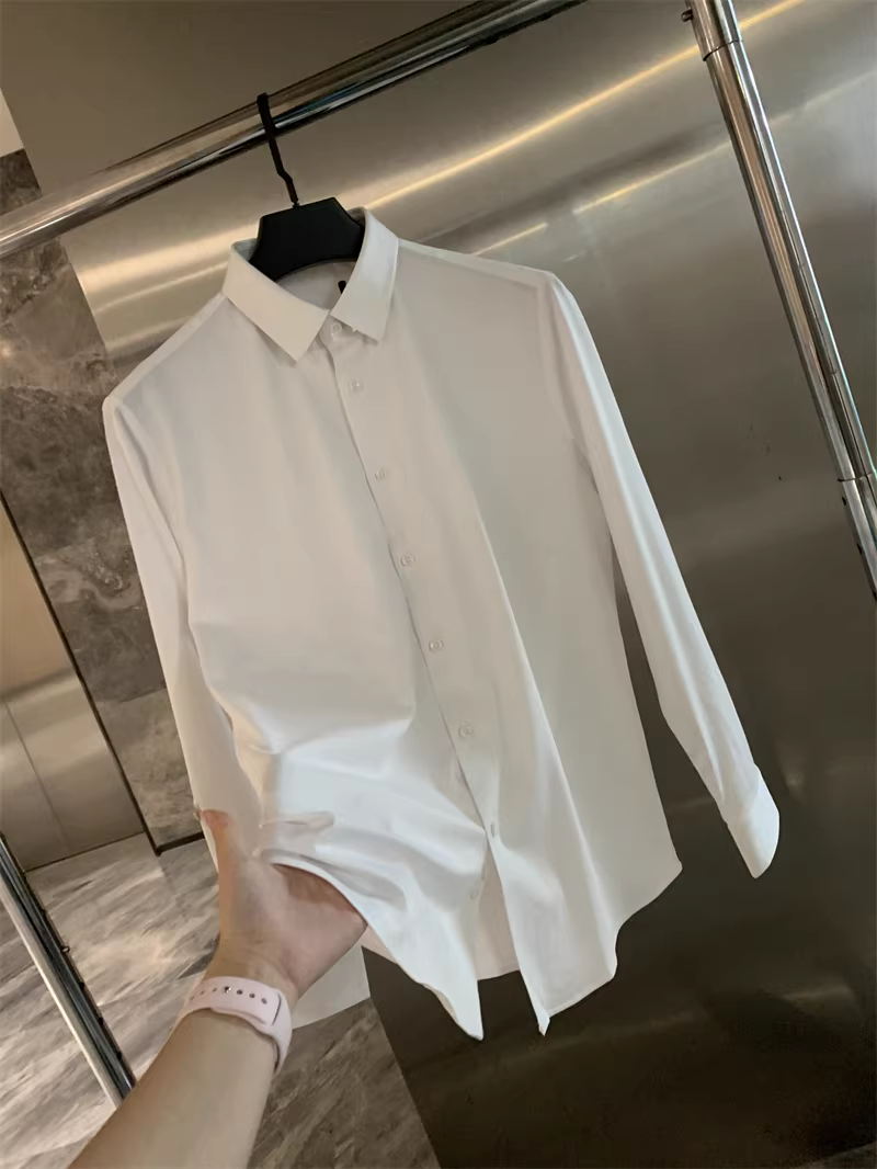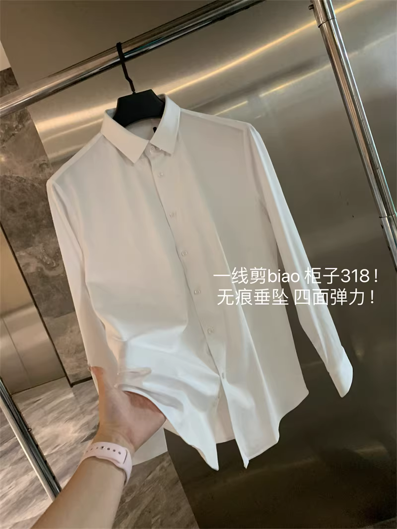 男士篙端无痕科技暗提花弹力长袖衬衫