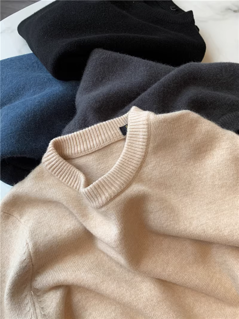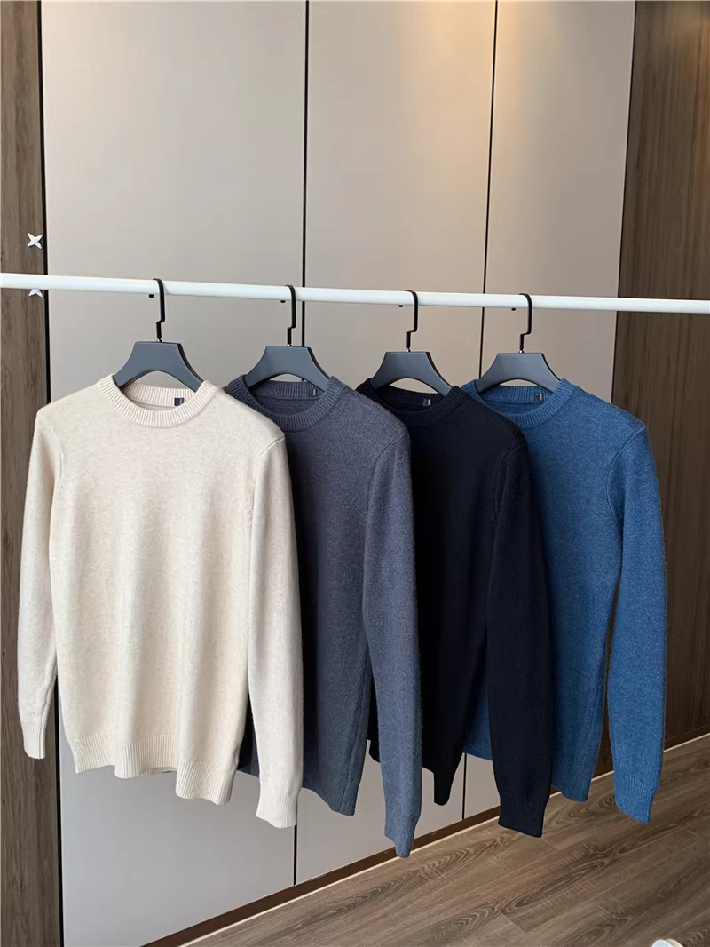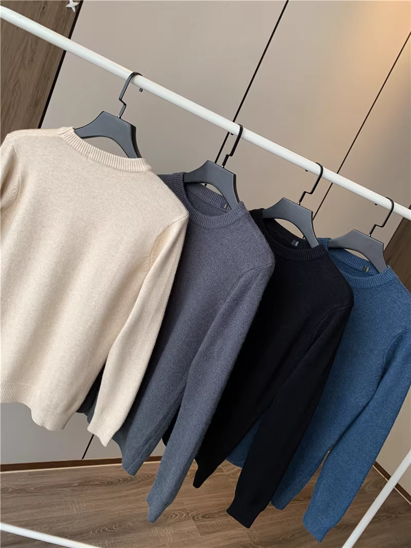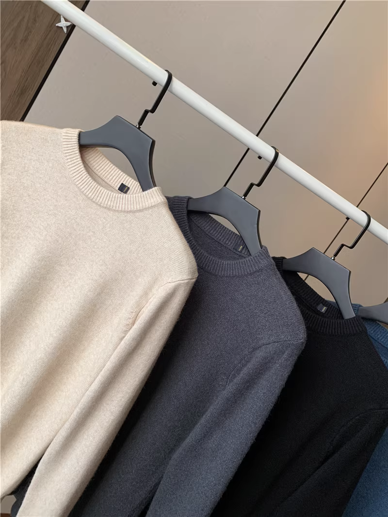 Giảm giá Don Quixote! Len + Sợi chống xù! Áo len cổ tròn mềm mại và tinh tế dành cho nam.