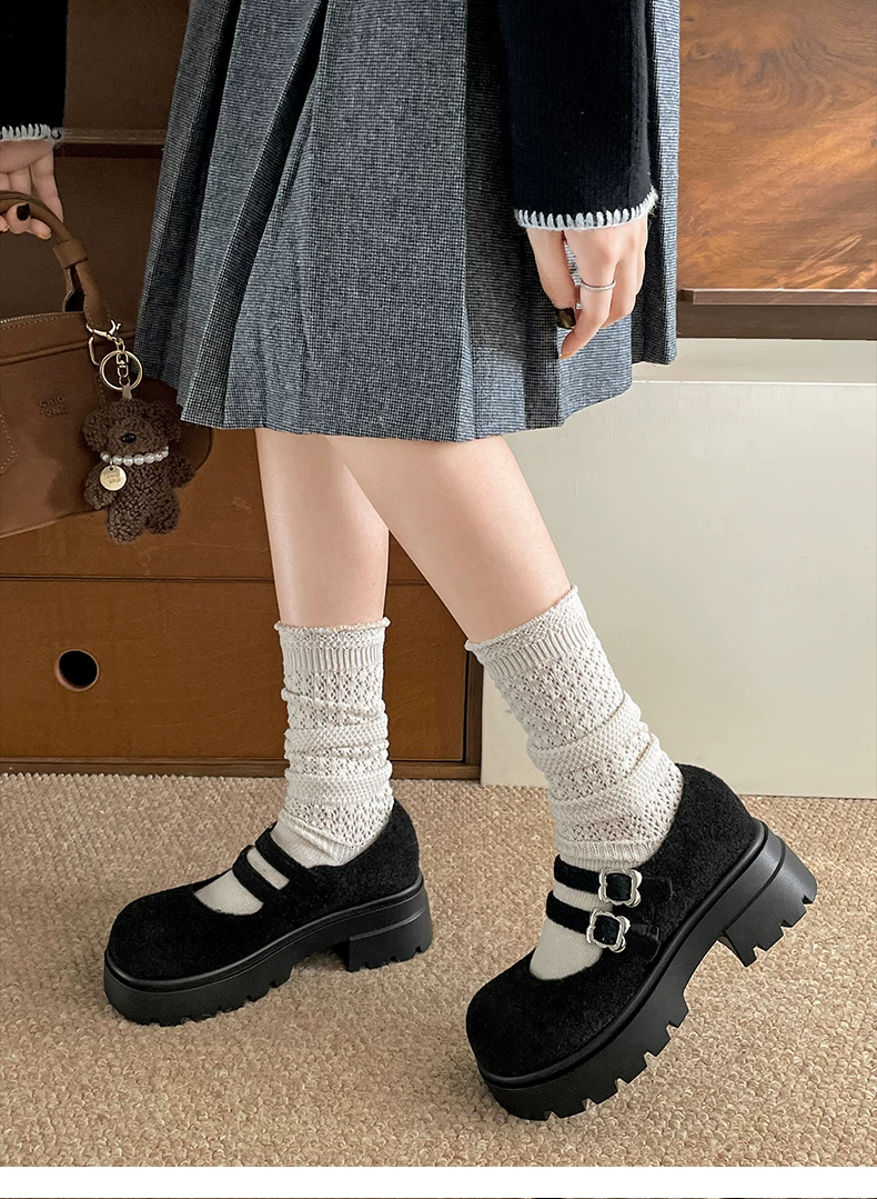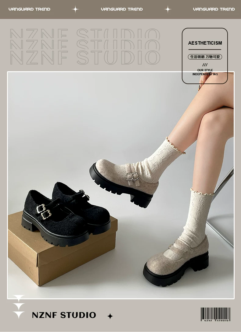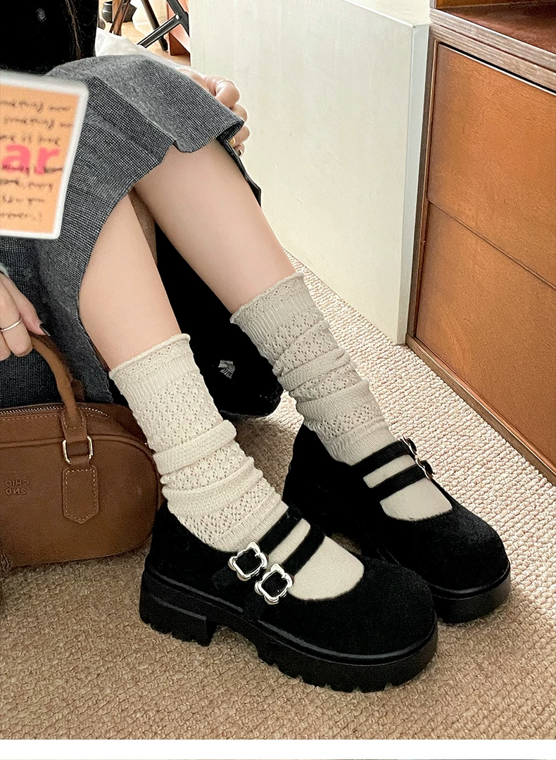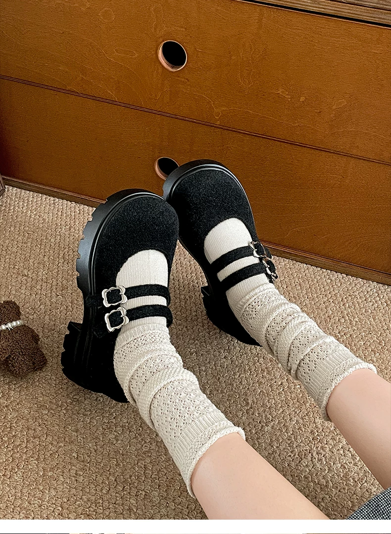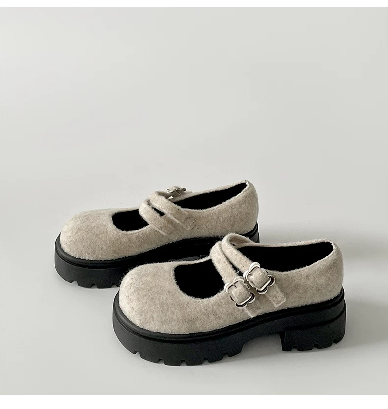 - Giày bệt đế dày mũi tròn nhung retro dành cho nữ 2025, mẫu mới thu đông, tăng chiều cao, kiểu Mary Jane dành cho người nhỏ nhắn