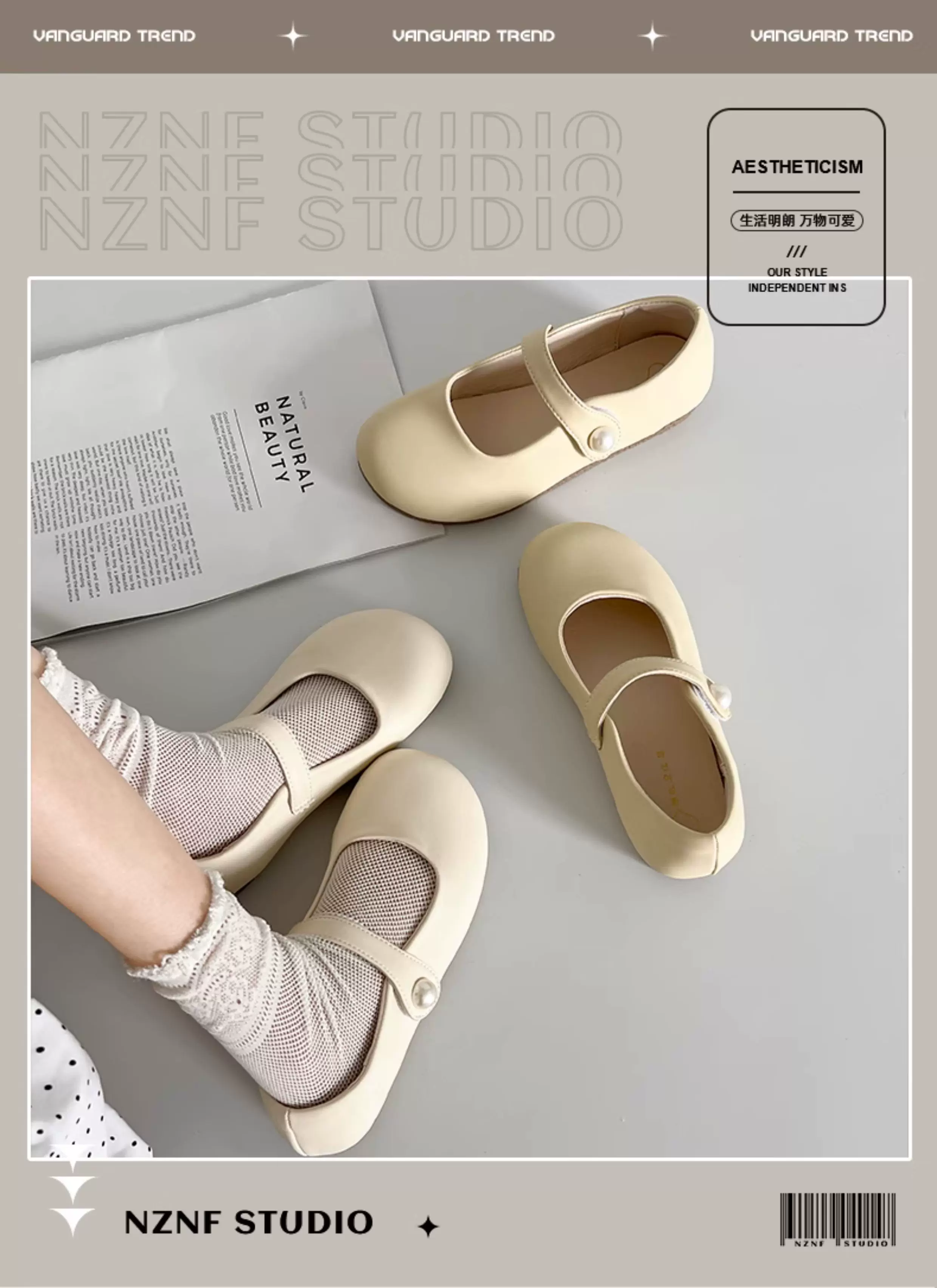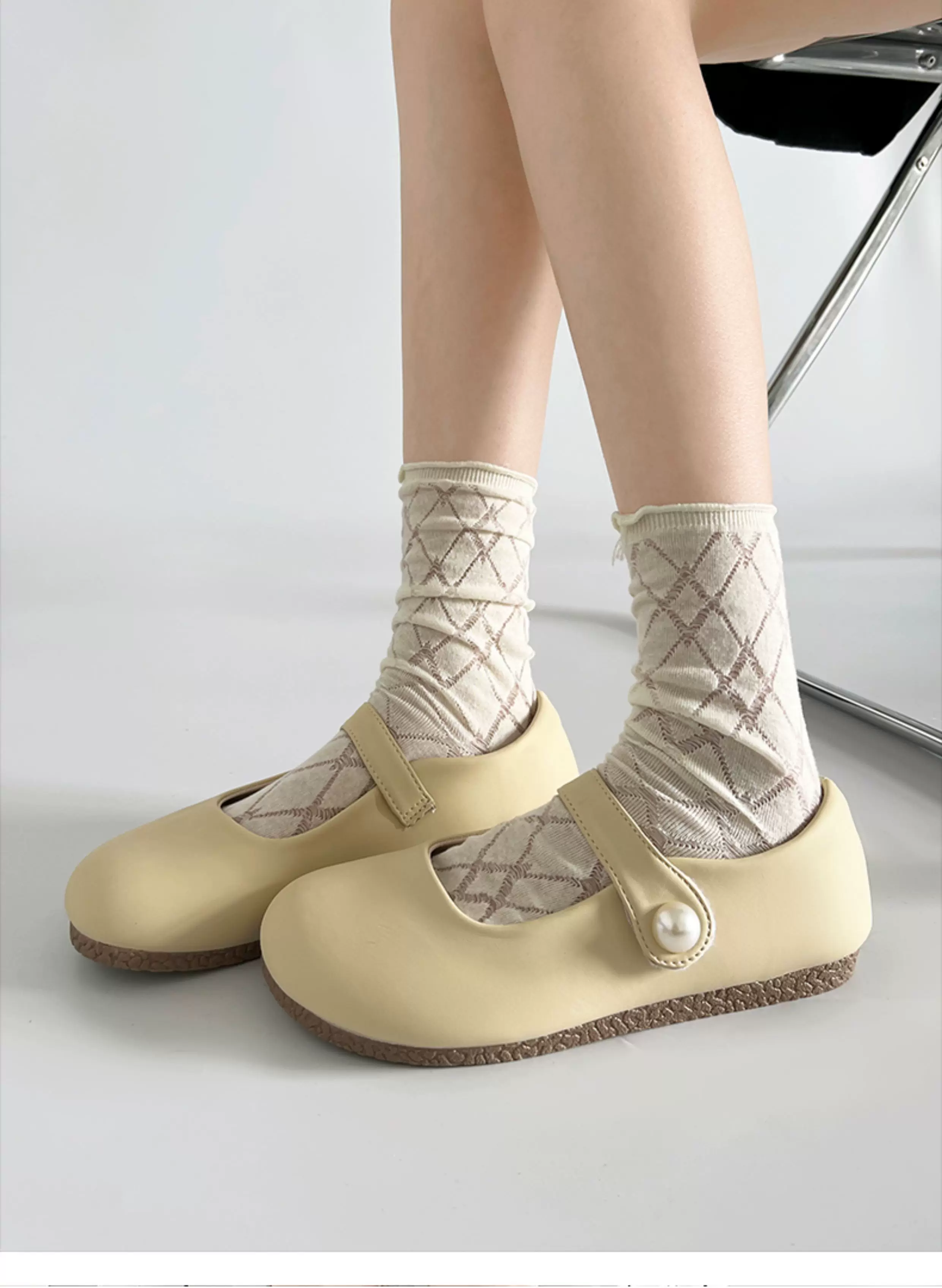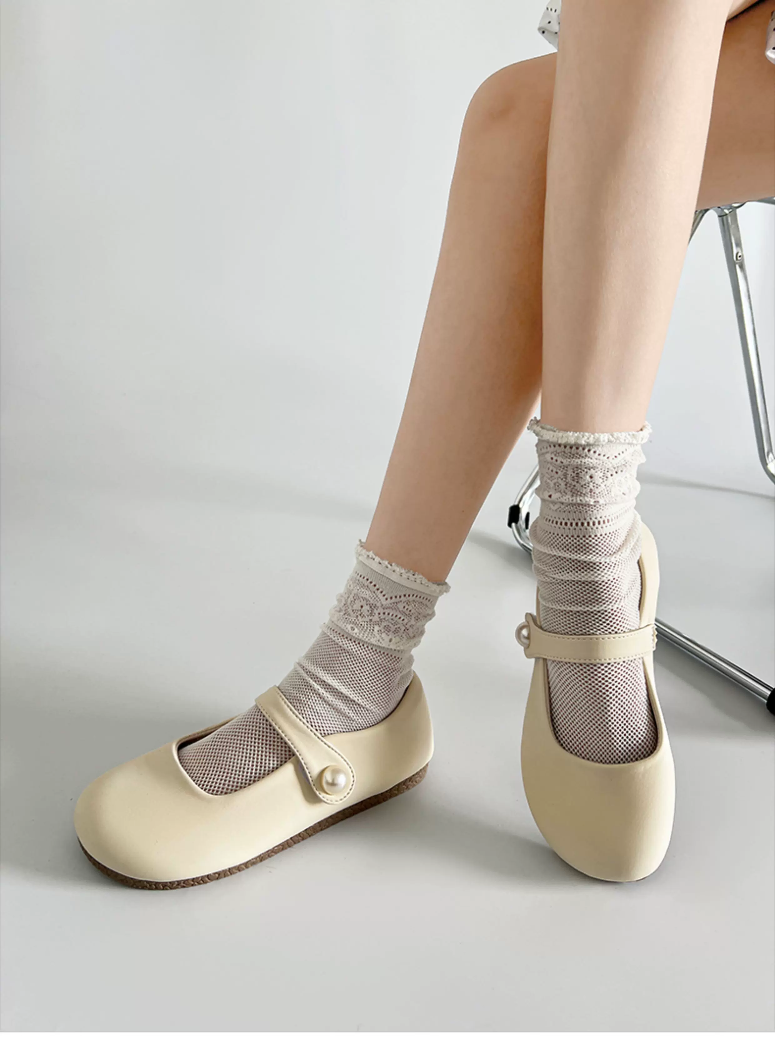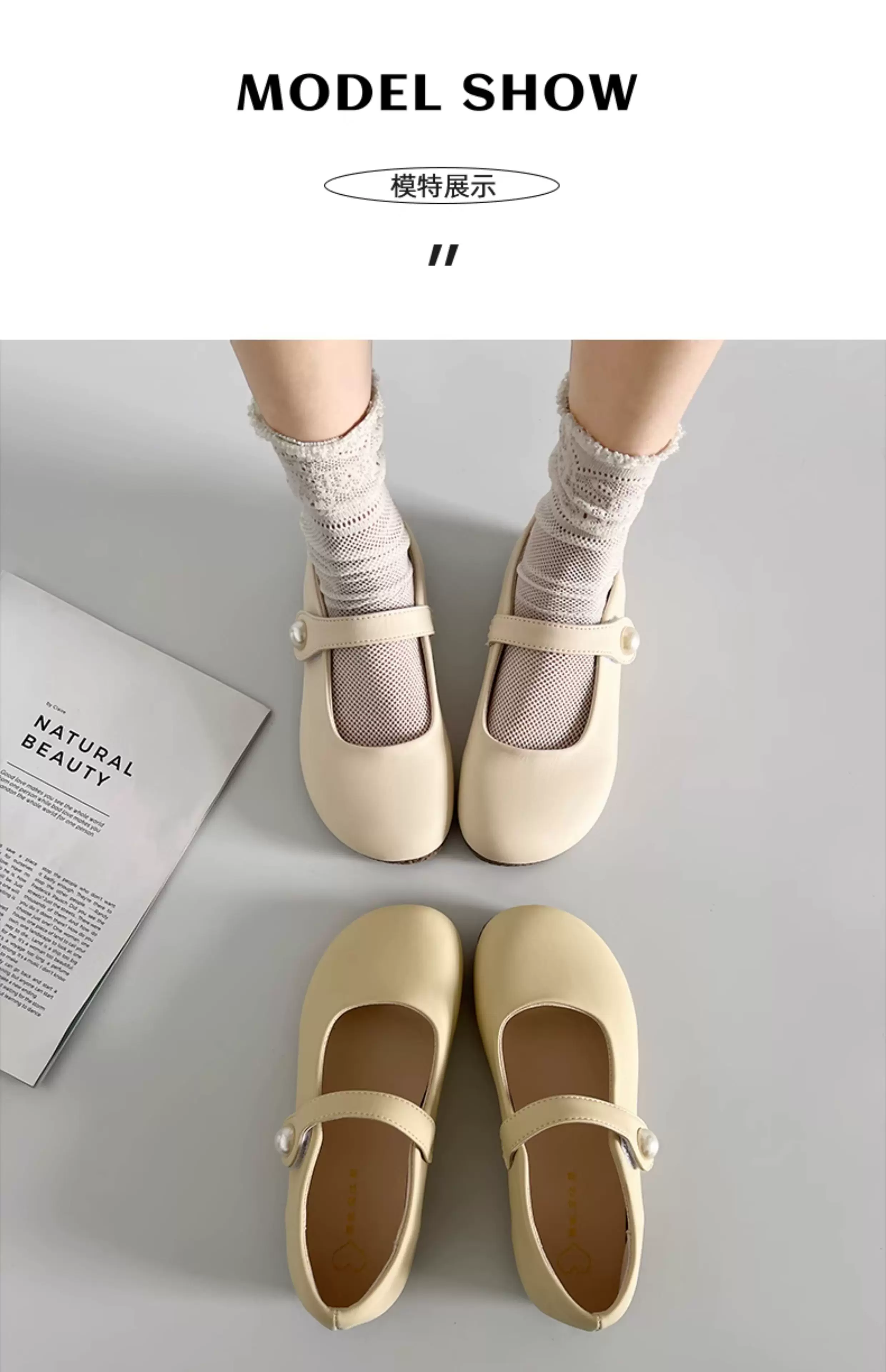 - Giày bệt kiểu Pháp màu trắng dành cho nữ, mẫu giày đa năng mùa thu mới 2025, phối được với chân váy, giày Mary Jane đế mềm kiểu retro.