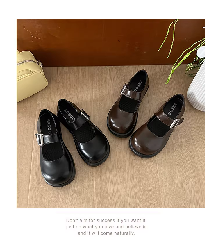 - Giày bệt nữ kiểu Pháp cổ điển màu đen, mũi tròn, đế thấp, mùa thu 2025 kiểu mới, giày Mary Jane đa năng, phối hợp tốt với chân váy